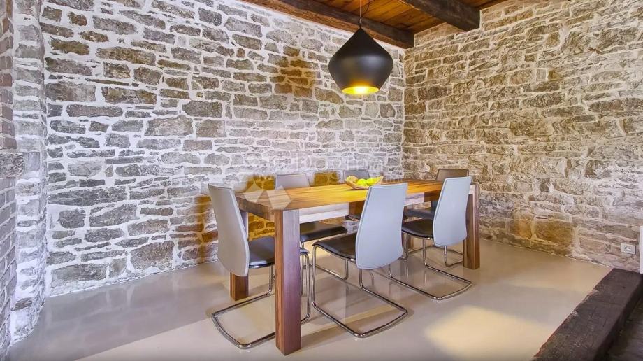 Ta čudovito renovirana hiša, ki se nahaja v okolici Poreča, s površino 130 m² in vrtom 382 m², je popoln primer uravnoteženega sklada modernega oblikovanja in tradicionalnega istrskega načina življenja. Vsak podrobnost je bila skrbno premišljena in zasnovana, s posebno pozornostjo pri uporabi izvirnih materialov. Večina sten je obložena s starim kamnom, kar tej vili daje avtentičen in rustikalni čar.