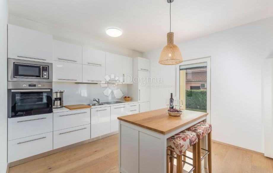 Le 8 km od Poreča in morja, v mirnem naselju, obdanem z naravo, se nahaja ta moderna samostojna hiša s skupno bivalno površino 134 m², zgrajena leta 2016 na zemljišču 600 m².