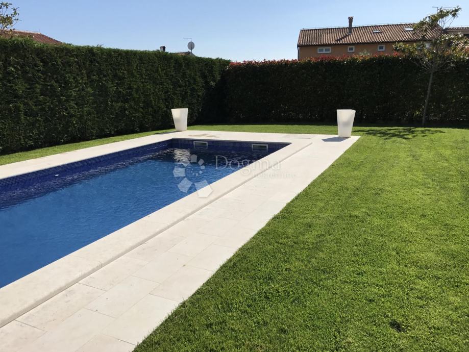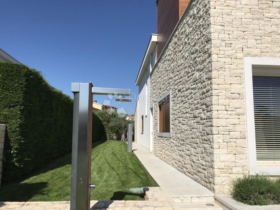 POREČ (okolica) - Moderna vila v bližini morja V bližini mesta Poreč, blizu čudovito urejenih plaž v iskani vasi, se nahaja ta odlična vila s skupno površino 160 m2. Vila je razdeljena na 2 nadstropji in je sestavljena iz vhodnega prostora, odprtega dnevnega prostora s kuhinjo in jedilnico, 3 spalnic, od katerih imata 2 svoji kopalnici, garderobi in terasi, ter še ene dodatne kopalnice v pritličju. Vila je opremljena s centralnim ogrevanjem, klimatsko napravo za ogrevanje in hlajenje ter kaminom v dnevni sobi. Na lepo urejenem in vzdrževanem dvorišču se nahaja 35 m2 velik bazen s prostorom za sončenje, poletna terasa in garaža, ki je povezana s hišo. Vila se prodaja popolnoma opremljena in opremljena. Izjemno kakovostna gradnja in možnost uporabe za turistični najem ali kakovostne počitnice naredita to vilo izjemno zaželeno za vsakogar. Zaradi izjemne lokacije je nepremičnina idealna za turistični najem.