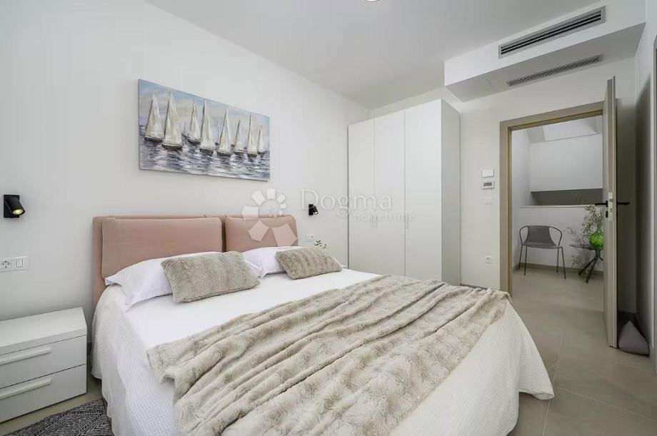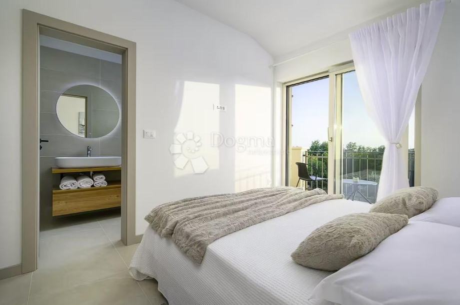 Na medetaži se nahaja ena spalnica, kopalnica in ločen toaleti, medtem ko prvi kat ponuja tri elegantne spalnice, vsaka s svojo kopalnico in izhodom na teraso s čudovitim razgledom na morje, oljčnike in vinograde.