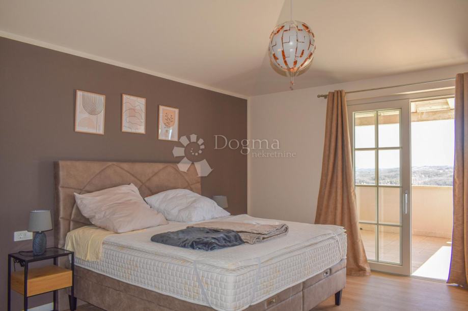 V nadstropju vile so tri prostorne spalnice, vsaka s svojo kopalnico in balkonom s panoramskim pogledom na okoliško naravo. To nadstropje ponuja popolno zasebnost in je popoln prostor za družino in goste, kjer vsak detajl izžareva eleganco in funkcionalnost.