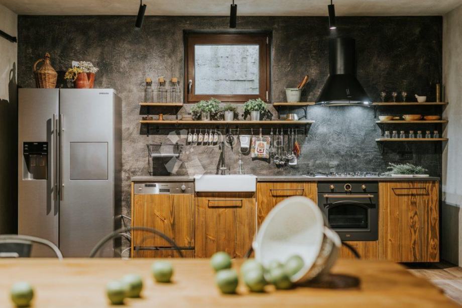 Ima štiri spalnice, od katerih je vsaka urejena v posebnem stilu. Tri sobe v prvem nadstropju imajo izhod na balkon s pogledom na morje, medtem ko je v pritličju dodatna soba, kopalnica, wc, dnevna soba s kuhinjo in izhodom na teraso. Klet v rustikalnem stilu vsebuje kuhinjo, jedilnico, kopalnico in spalnico.