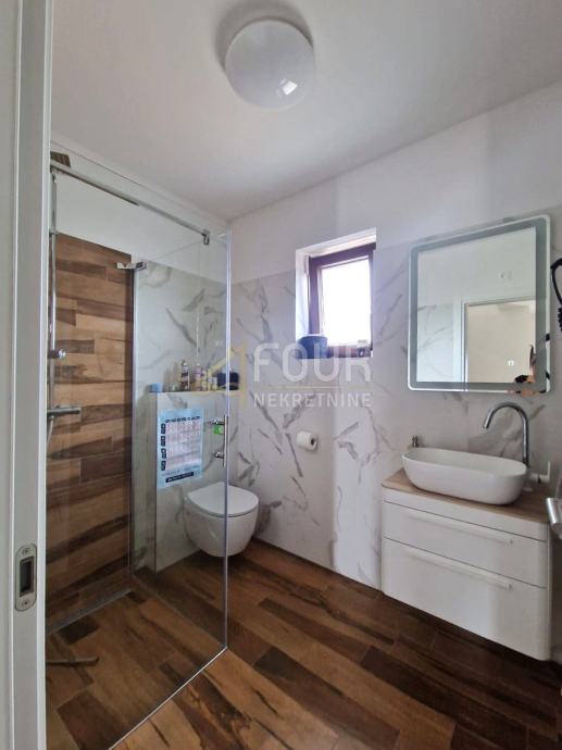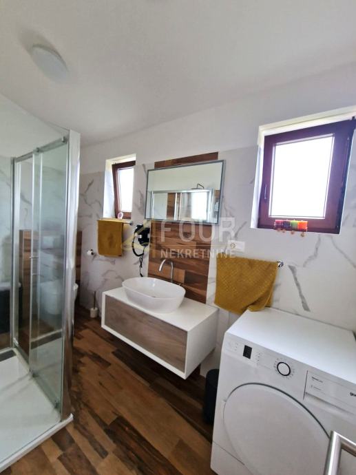 Opremljeno je s talnim ogrevanjem na toplotno črpalko, PVC stavbnim pohištvom in protipožarnimi vrati. Talne obloge so keramika in laminat, fasada pa je dobro izolirana z debelino 10 cm.