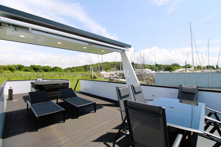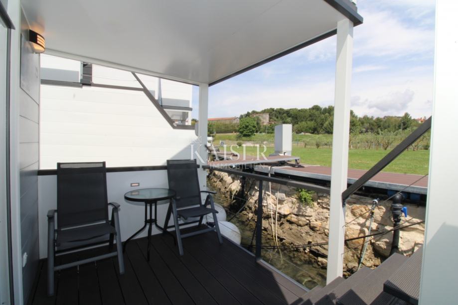 Pula je največje mesto na istrskem polotoku, znano po bogati zgodovini, impresivni rimski arhitekturi in slikoviti obali. Osrednji simbol mesta je veličasten rimski amfiteater (Arena), eden najbolje ohranjenih na svetu, ki še danes služi kot spektakularen oder za koncerte in prireditve. Poleg kulturne dediščine Pula ponuja številne plaže, kristalno čisto morje in sproščeno sredozemsko vzdušje, zaradi česar je popolna mešanica zgodovine, narave in sodobnega življenja. Zaradi mednarodnega letališča in odličnih prometnih povezav je Pulj idealna destinacija tako za turiste kot za tiste, ki iščejo drugi dom na Jadranu. Kaiser Immobilien vam predstavlja edinstveno in inovativno nepremičnino - razkošno plavajočo hišo v izmeri 84 m², ki ponuja neverjetno kombinacijo modernega dizajna, funkcionalnosti in popolne bližine morja. Ta prefinjena hiša ob vodi je zasnovana tako, da izpolnjuje najvišje standarde udobja, hkrati pa ostaja v harmoniji z naravo, ki jo obdaja. Sestavljen je iz dveh elegantno opremljenih spalnic, prostorne dnevne sobe, ki se naravno povezuje z jedilnico in kuhinjo odprtega tipa, ter treh teras s skupno površino 50 m², ki ponujajo nepozaben razgled in občutek popolnega miru. Kuhinja v obliki črke L je moderno opremljena - vključuje hladilnik, zamrzovalnik, steklokeramično kuhalno ploščo Gorenje, napo, pomivalno korito iz nerjavečega jekla ter praktične omarice nad in pod delovno površino. Dnevna soba izžareva toplino in funkcionalnost: udoben kavč se zlahka spremeni v posteljo za dva (140 x 200 cm), na voljo pa sta tudi klubska mizica in prostorna garderobna omara. Jedilnica ima sodoben pridih z dizajnersko mizo in štirimi stoli, idealnimi za uživanje v obrokih s pogledom na morje. Glavna spalnica je opremljena z zakonsko posteljo (160 x 200 cm), omarami s stenskim mostom in – kar je še posebej privlačno – manjšo, a zasebno teraso, ki ponuja enega najbližjih in najbolj neposrednih razgledov na odprto morje. Otroška soba ponuja pograd (80 x 200 cm) in veliko omaro, zaradi česar je ta hiša odlična izbira za družine. Kopalnica je premišljeno opremljena s prostorno tuš kabino (80 x 100 cm), umivalnikom z armaturami iz nerjavečega jekla, elegantnimi omaricami z ogledali, bojlerjem Gorenje in straniščem. Ena največjih prednosti te hiše so njene tri terase, vključno s spektakularno strešno teraso – pravim majhnim zasebnim zatočiščem. Na strehi vas jacuzzi vabi k popolni sprostitvi, panoramski pogled na morje pa vas pusti brez sape in vsak sončni zahod spremeni v osebno doživetje razkošja in miru. Praktičnost ni bila zanemarjena: mesečni režijski stroški za vodo, elektriko in komunalne storitve znašajo okoli 50 €, koča pa je registrirana kot plovilo, kar omogoča letni privez po ceni le 3500 €. Cena hiše je 130.000 € brez DDV. Zgornjemu znesku se doda 25-odstotni DDV, kar skupaj znaša 162.500 EUR. Poleg tega, da je nepremičnina privlačen bivalni prostor, ponuja tudi investicijsko priložnost z možnostjo oddajanja v najem. Za komercialne najeme je treba odpreti podjetje, kar odpira dodatne poslovne priložnosti. Ta plavajoča hiša ni le dom – je življenjski slog. Popolna kombinacija svobode, razkošja in povezanosti z naravo, idealna za tiste, ki si želijo nekaj drugačnega, boljšega in – preprosto – več. Bližina ugodnih storitev: Pula, center - 2,5 km Plaža - 1 km Restavracija - 180 m Kavarna - 90 m Trgovina - 600 m Telovadnica - 1 km Znamenitosti - 1 km Avtobusna postaja - 400 m Bolnišnica - 3,9 km Letališče - 10 km Oddaljenost do večjih mest: Pula-Ljubljana: 200 km Pula-Dunaj: 580 km Pula-Budimpešta: 600 km Pula-Prag: 900 km Pula-München: 600 km Pula-Zagreb: 264 km Agencijska provizija za kupca znaša 3% + DDV in se plača v primeru nakupa nepremičnine, ob sklenitvi prvega pravnega dejanja. Zainteresirani kupci si lahko ogledajo nepremičnino šele po podpisu pogodbe o posredovanju. ID-KODA: 127-126 Če si želite nepremičnino ogledati osebno, se obrnite na: Jennifer Hofmann E-pošta: jennifer@kaiser-immobilien.hr Tel.: +385-91-515-0887 http://kaiser-immobilien.hr/