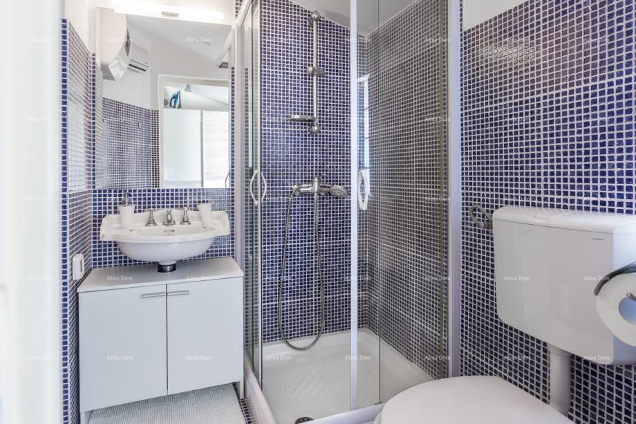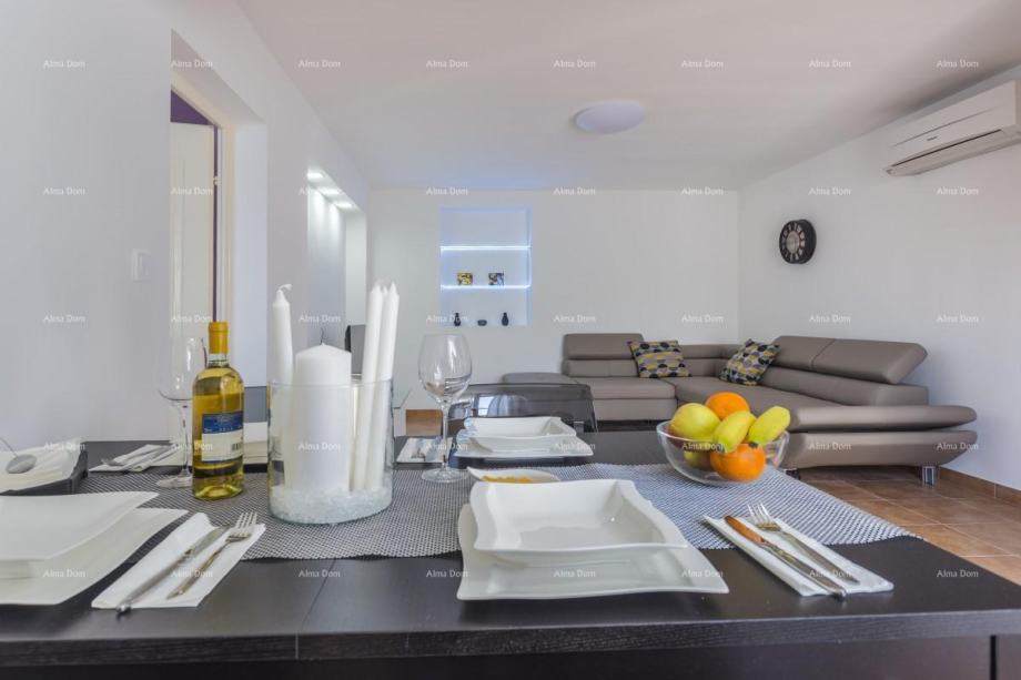 V prvem nadstropju je še eno stanovanje, ki obsega hodnik, kopalnico, dve spalnici, kuhinjo, dnevno sobo in jedilnico ter shrambo v kleti.