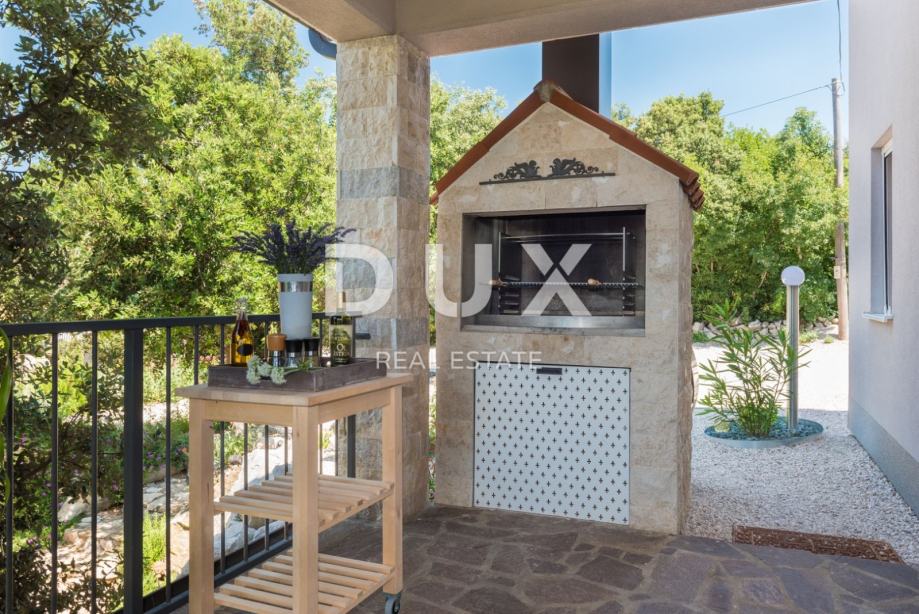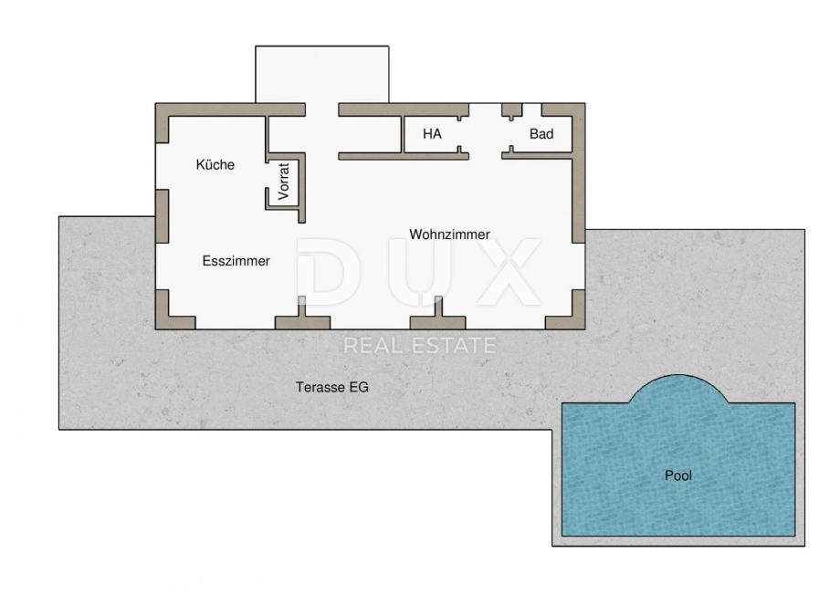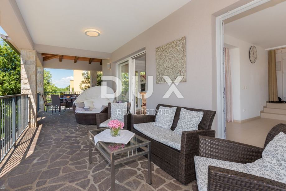 Na jugovzhodni obali Istre, kjer se zeleni griči srečajo z morjem, kjer se združita narava in dediščina, se na razdalji le štirih kilometrov nahajata dve majhni mesti podobne velikosti. z različnim, a med seboj komplementarnim značajem - Labin in Rabac. Rabac zaradi svojih belih prodnatih plaž, bogate sredozemske vegetacije in kristalno čistega morja imenujejo biser Kvarnerja. Nekoč majhna ribiška vasica je danes Rabac privlačna turistična destinacija, ki v spletu pisanih ulic skriva bogastvo kulturnih dogodkov. Zelena okolica Rabca in slikovito zaledje vabita na avanturo, raziskovanje in rekreacijo skozi vse leto. Nedaleč od Rabca in Labina se prodaja hiša z bazenom in pogledom na morje. Nahaja se v položni soseski s počitniškimi hišami in družinskimi hišami, ki ponuja popolno ravnovesje podeželskega okolja ter bližine morja in mestnih dobrin. Nepremičnino poleg mikrolokacije odlikuje kakovostna gradnja, ki zagotavlja dolgoročno zadovoljstvo in kakovost bivanja. Hiša brezčasne zasnove se oblikovno in barvno zlije z vasjo in pokrajino. Zasnovan je kot ena stanovanjska enota, ki se razprostira v dveh okusno urejenih etažah. Pritličje obsega kuhinjo in jedilnico ter dnevno sobo z izhodom na pokrito teraso, WC za goste, shrambo in shrambo. Prvo nadstropje obsega predprostor, tri spalnice, dve kopalnici in teraso. Ograjeno dvorišče je bogato z zelenjem in sredozemskimi zelišči ter rastlinjem, popolno harmonijo pa zaokroža 24 m² velik bazen s prostorom za sončenje. Odlična lokacija ter prostorska organiziranost notranjosti in zunanjosti te nepremičnine dajejo priložnost za udobno družinsko življenje ali investicijsko investicijo v turistični najem.