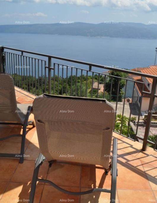 Hiša z apartmaji za prodajo na zelo mirnem mestu s panoramskim pogledom na morje, Rabac. Hiša ima 368 m2 bivalne površine in se nahaja na parceli s skupno površino 835 m2.