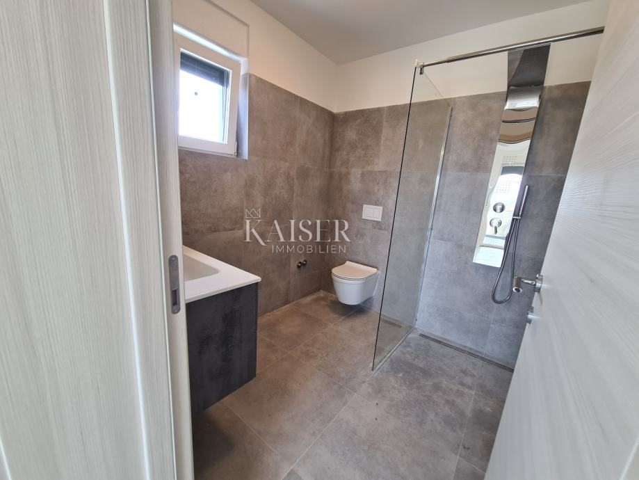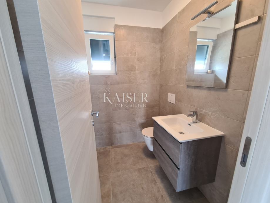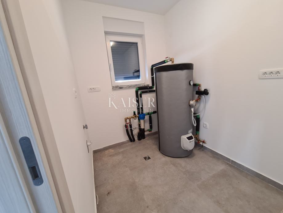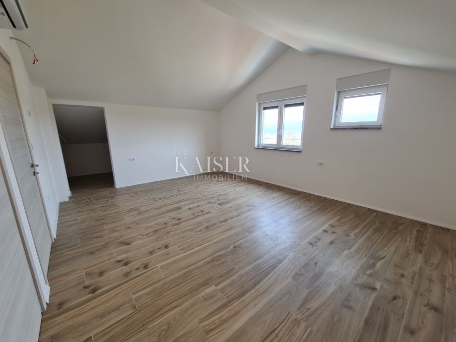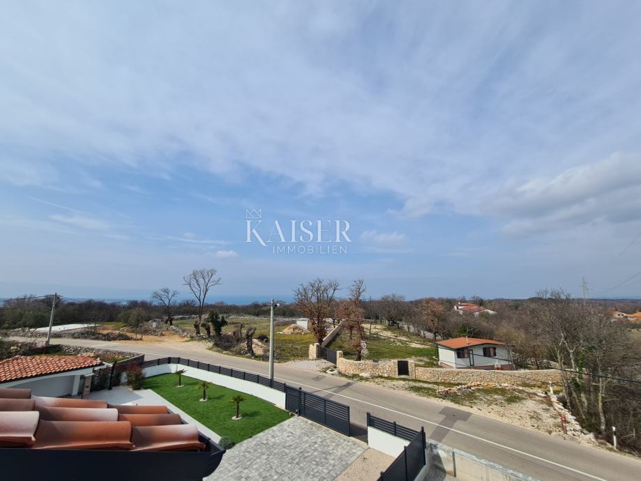 Kaiser immobilien ponuja samostojno hišo s pogledom na morje v bližini Malinske, na izredno dobro prometni lokaciji. Ta novogradnja s 194m2 bivalne površine je razdeljena na dve etaži. V pritličju je dnevna soba in kuhinja, kopalnica, wc, shramba, kurilnica in pokrita terasa. Notranje stopnice vodijo v prvo nadstropje, ki je sestavljeno iz treh spalnic in treh kopalnic ter pokrite terase s pogledom na morje. Hiša ima tudi prostoren vrt v velikosti 630m2, ki bo urejen z mediteransko vegetacijo in ima dovolj prostora za parkirna mesta, pa tudi za izgradnjo bazena in prostora za sončenje. Pri gradnji so bili uporabljeni kvalitetni materiali, PVC mizarstvo, kvalitetna sanitarna keramika in tlaki, v kopalnicah je vgrajeno talno gretje, vsi prostori so klimatizirani, hiša ima tudi dimnik in pripravo za kamin.