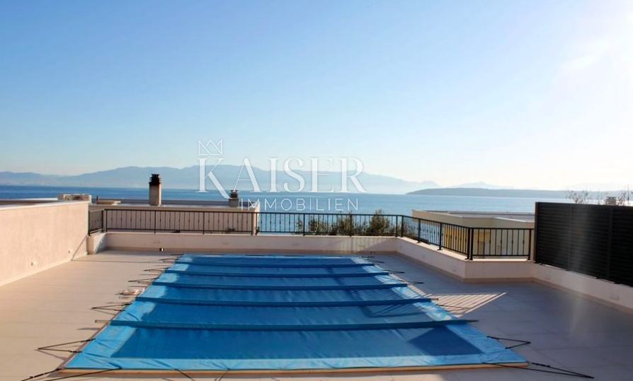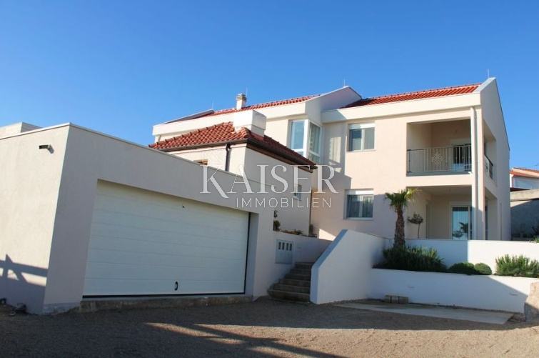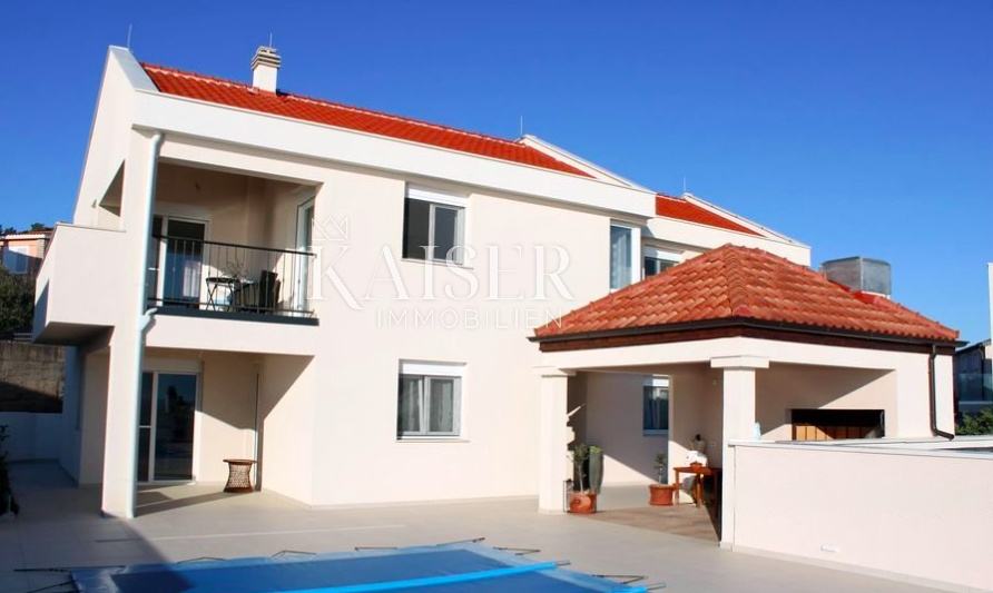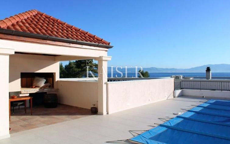 Kaiser immobilien posreduje pri prodaji nove vile na otoku Šolta, le trideset metrov od plaže. Vila se nahaja v drugi vrsti od morja, na parceli 700 m2, z zunanjim bazenom in tremi stanovanjskimi enotami skupne neto površine 260 m2. V pritličju sta dve simetrični enosobni stanovanji, vsak po 47m2, sestavljeni iz predprostora, spalnice, kopalnice, dnevne sobe, kuhinje in jedilnice s pripadajočima terasama, ločuje pa ju stopnišče. V pritličju je tudi strojnica z rezervoarji za pripravo tople vode, ki so povezani s sončnimi kolektorji na strehi. V prvem nadstropju je prostorno trisobno stanovanje velikosti 115 m2, ki obsega dve spalnici in eno delovno sobo, dve kopalnici, balkon, dve terasi in prostorno dnevno sobo s kuhinjo in jedilnico odprtega tipa, s panoramskim razgledom. morja. Pri gradnji hiše so bili uporabljeni kvalitetni materiali, je moderno urejena, prodaja se opremljena in ni potrebna dodatnih investicij. Lepa terasa z bazenom 8,4 x 4,4 m, prostorom za sončenje, tušem in pokritim vrtnim kaminom kraljuje urejen vrt, ozelenjen z mediteranskim rastlinjem. Na voljo je tudi garaža 30m2, strojnica in zunanji WC, pred garažo pa je prostor za več parkirnih mest. Iz vseh delov hiše in vrta seže pogled na čudovito modro morje.