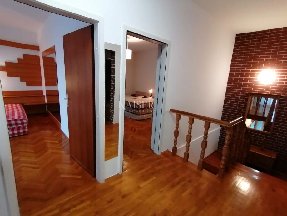 Nepremičninska agencija Kaiser Immobilien iz Opatije predstavlja družinsko hišo, ki se nahaja na zelo mirni lokaciji v slepi ulici v mestu Kastav/Trinajstići in jo obdaja veliko zemljišče s skupno površino 1.835 m2 (1.643 m2). m2 vrta in dvorišča + 192 m2 pozidane površine).