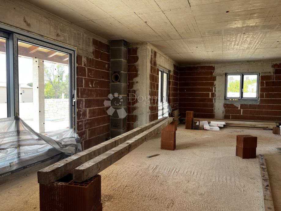 Svetvinčenat, ali kot ga lokalno imenujejo Savičenta, je slikovita vasica v osrednji Istri, znana po bogati zgodovini in kulturni dediščini. To mestece je obdano s čudovito pokrajino, vinogradi in oljčnimi nasadi, srce vasi pa je veličasten renesančni grad Morosini-Grimani iz 16. stoletja. Ta grad je skupaj s trgom Placa in cerkvijo sv. Vincencija glavna atrakcija, ki privablja obiskovalce z vsega sveta. Svetvinčenat je od Vodnjana oddaljen približno 10 kilometrov, zaradi česar je lahko dostopen tistim, ki prihajajo iz tega dela Istre. Vožnja z avtomobilom med tema dvema mestoma traja približno 10 minut, kar omogoča enostaven enodnevni izlet ali obisk ob koncu tedna. Svetvinčenat je od Pulja, največjega mesta v Istri in enega glavnih kulturnih središč regije, oddaljen približno 20 kilometrov. Pot od Pulja do Svetvinčenta traja približno 30 minut vožnje z avtomobilom, kar omogoča enostaven dostop številnim turistom, ki želijo raziskati notranjost Istre in uživati v mirnem in pristnem istrskem vzdušju. Svetvinčenat ponuja popolno kombinacijo zgodovinskih znamenitosti, kulturnih dogodkov in naravnih lepot, zaradi česar je idealna destinacija za vse, ki želijo doživeti pristno Istro. Naprodaj je hiša v gradnji (roh bau) z bazenom, ki se razteza čez pritličje in prvo nadstropje. Ta prostorna nepremičnina ponuja izjemno priložnost za okrasitev po lastnih željah. PRITLIČJE obsega: - pokrit vhod, - predsobo, - stranišče, - dnevno sobo in kuhinjo, - shrambo, - spalnico, - kopalnico, - dve pokriti terasi. PRVO NADSTROPJE obsega: - dve spalnici, - dve kopalnici. Hiša ima že vgrajena troslojna okna, ki zagotavljajo odlično toplotno in zvočno izolacijo. Ta hiša je idealna za družino, ki išče sodoben dom z dovolj prostora za vse člane, bazen pa doda dodatno vrednost za sprostitev in uživanje v toplih poletnih dneh. Dve pokriti terasi nudita idealen prostor za obroke na prostem ali sproščanje na svežem zraku. Glede na trenutno fazo gradnje imajo kupci možnost prilagoditi notranjost svojim željam in ustvariti dom svojih sanj. Lastništvo je urejeno!