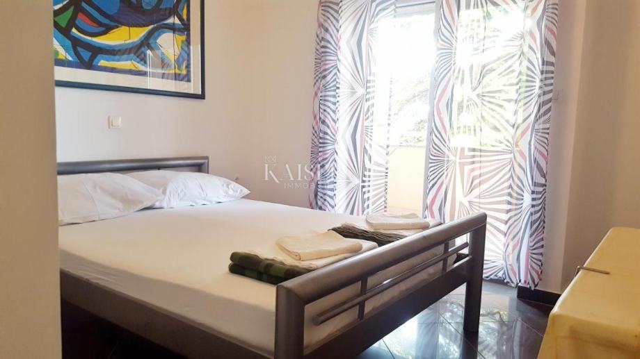 Kaiser Immobilien predstavlja čudovito samostojno hišo v Novem Vinodolskem, le 150 metrov od morja. Ta samostojna hiša obsega 658 m2 površine, od tega je 400 m2 vrta. Hiša je sestavljena iz pritličja, nadstropja in visoke mansarde. V pritličju je garsonjera z balkonom, ena soba s kopalnico, dvosobno stanovanje z balkonom. Skupna površina pritličja je 144m2. V prvem nadstropju se nahaja enosobno stanovanje in dva enosobna apartmaja. Mansarda je v Rochbau fazi, skupna uporabna površina pa je cca 100m2. V pritličje se vstopa stransko z dvorišča, nadstropje in mansarda pa sta ločena z notranjim stopniščem. Na vrtu sta še dve ločeni garsonjeri z izhodom na teraso ter velika konoba za druženje. Na vrtu je spredaj lepo urejen vrt, zadaj pa je parkirišče za več kot 7 avtomobilov, možna pa je tudi izgradnja bazena. Nepremičnina se uporablja za turizem. Lokacija: Morje - 150m Center - 50m Pošta - 50m Lekarna - 50m Pekarna - 50m Trgovina - 50m INA črpalka - 50m Turistična skupnost - 50m Otroško igrišče, šola in vrtec - 70m Za vsa dodatna vprašanja se obrnite na agenta Davorja Piškulića davor@kaiser-immobilien .hr +00 385 95 583 8240 WhatsApp, Viber