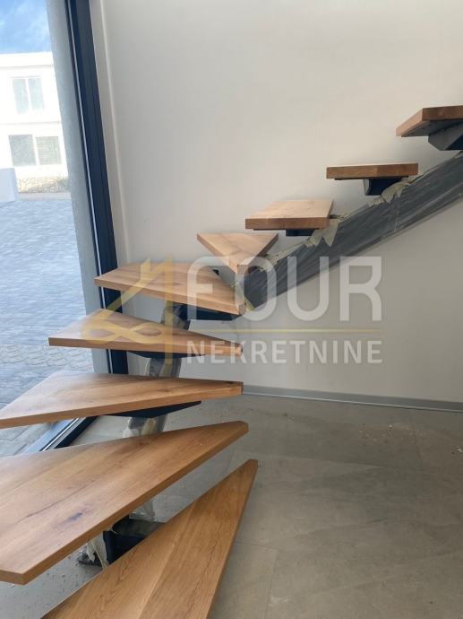 V ponudbi je visokokakovostna in sodobna novogradnja v Vodicah, na mirni lokaciji s prelepim pogledom na morje! Hiša je dvojček, razdeljena na tri etaže in skupna površina znaša 150 m2. V kleti se nahaja kopalnica ter dodaten odprt prostor, ki lahko služi kot družabna soba ali wellness cona, odvisno od želja in preferenc. V pritličju so 3 spalnice z lastnimi kopalnicami, medtem ko se v zgornjem nadstropju nahaja dnevni del - kuhinja z dnevnim prostorom in jedilnico, ter prostorna terasa s bazenom! Odlična priložnost za naložbo v turistični najem!