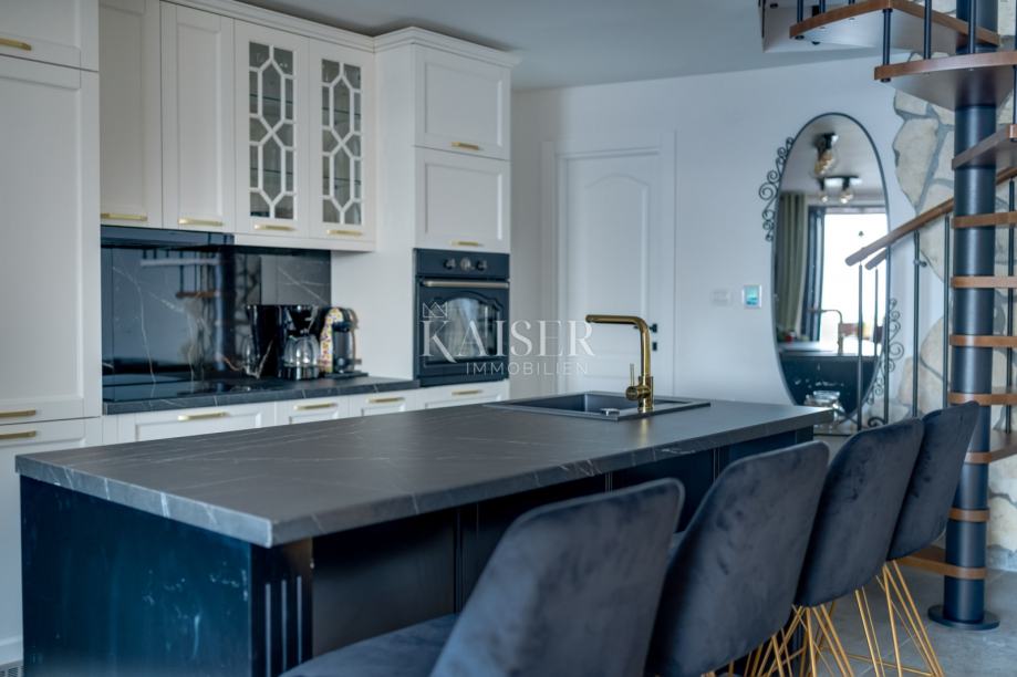Za trenutek se ustavite in si poskusite zamisliti obmorsko hišo svojih sanj. Prebujanje ob vonjih in zvokih morja, poletni vetrič, panoramski razgledi iz vsakega nadstropja, mediteranski dizajn in vrhunska oprema, je le del tega, kar ponuja ta izjemna nepremičnina, ki jo ponujamo. Kaiser immobilien posreduje pri prodaji nepremičnine na nepremagljivi lokaciji - pečini nad morjem, v starem mestnem jedru Vrbnika na otoku Krku. Vrbnik se nahaja na vzhodni strani otoka Krka, leži na pečini, ki se strmo dviga približno 50 metrov nad morjem. Je mestece, ki izhaja iz morja in se potopi v modro nebo, očaralo pa vas bo s starim mestnim jedrom, zgodovinsko dediščino, plažami izjemne čistoče, okusi vina in pristnih krških jedi ter edinstvenimi razglednimi točkami. Vrbnik se v pisnih dokumentih prvič omenja 1. januarja 1100. Trenutno ima okrog 900 prebivalcev in je prava izbira za vse, ki si ne želite množičnega turizma, ampak iščete pristen mediteranski šarm. Hiša ima skupno površino 99m2 in se razteza v treh etažah. V pritličju je odprt bivalni prostor velikosti 30 m2, ki obsega kuhinjo, jedilnico in dnevno sobo, ločeno je tudi stranišče ter terasa 60 m2 s prostorom za sončenje in hidromasažnim bazenom. Spiralno stopnišče vodi v drugo nadstropje, kjer je spalnica z lastno kopalnico. V tretjem nadstropju, do katerega se dostopa skozi vrata z zunanje strani, je še ena spalnica z lastno kopalnico. Vsaka soba v posestvu nudi neoviran panoramski pogled na morje in dramatično pokrajino bližnjih gora. Notranjost je skrbno premišljena, harmonično sledi značilnostim mediteranskega sloga, z nežno barvno shemo v zemeljskih odtenkih pa spominja na povezanost z naravo, ki je v Sredozemlju že od nekdaj prisotna in pomembna. Prostor je dodatno oplemeniten s teksturami in prepoznavnimi vzorci, zlitje brezčasnih materialov, kot sta kamen in les, s sodobno tehnologijo pa je brezhibno izvedeno. Objekt je bil leta 2021 popolnoma prenovljen in opremljen. Obnova je zajemala vse inštalacije, vse odprtine - mizarstvo, vrhunske keramične ploščice, nove sanitarije, novo kuhinjo in ostalo pohištvo. Hiša ima v vseh treh etažah vgrajeno talno ogrevanje, vsi prostori so klimatizirani, avtomatsko prezračevanje Lunos za nadzor in regulacijo vlage ter ozvočenje vrhunskega proizvajalca Sonos. Ta nepremičnina se prodaja v celoti opremljena in opremljena. Približno 60m od objekta je lastniško parkirišče v izmeri 40m2 - izjemna redkost in privilegij za lastnike nepremičnin v starem mestnem jedru. Nepremičnina se lahko uporablja tudi kot naložba, je kategorizirana za turistični najem in kot taka dosega odlične poslovne rezultate. Ne glede na to, ali iščete sanjsko nepremičnino na idealni lokaciji ali razmišljate o investiciji, je ta nepremičnina zagotovo prava izbira. Naslovnice vseh lifestyle revij so zagotovljene! Agencijska provizija za kupca znaša 3% + DDV in se plača v primeru nakupa nepremičnine, ob sklenitvi prvega pravnega posla. ID KODA 105-288