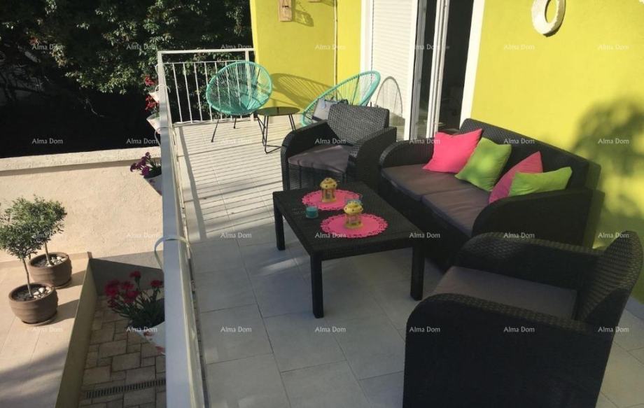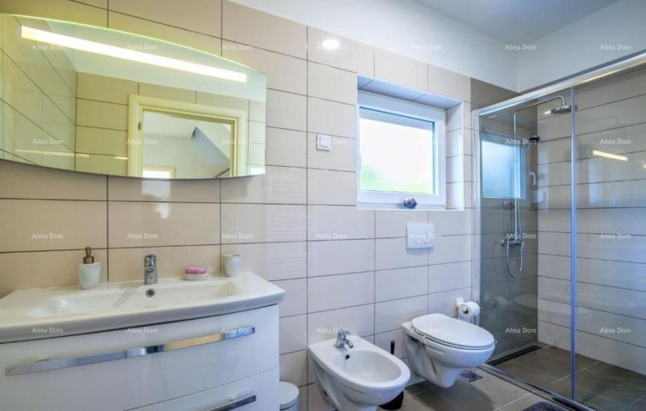 V mirnem naselju se prodaja lepa hiša s skupno bivalno površino 220 m2 na parceli 400 m2 z bazenom. Hiša je sestavljena iz dveh etaž. V pritličju je kuhinja, dnevna soba, spalnica in kopalnica. V nadstropju so štiri spalnice, od katerih tri imajo izhod na balkon, kopalnico, pralnico in dodaten prostor za druženje. Na ograjenem dvorišču hiše pri bazenu se nahaja pokrita letna kuhinja z žarom in klet cca 50 m2, v kateri sta dve sobi in kopalnica. Hiša ima lastno parkirno mesto in garažo. Do čudovitih plaž je 10 minut vožnje, do centra Pulja in ostalih objektov pa 10 minut vožnje. Ta hiša je odlična priložnost za družinsko življenje, oddih od stresa mestnega življenja v sredozemskem podnebju ali kot naložba za turistične najeme.