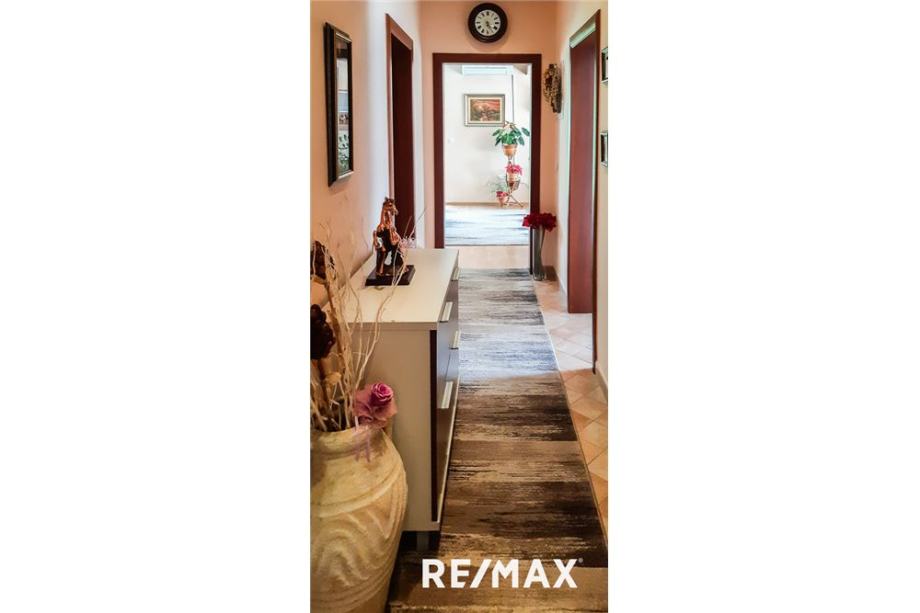 1. NADSTROPJE: hodnik, kopalnica z wc-jem in tuš kabino, tri spalnice, otroška soba, dnevna soba in kuhinja z jedilnico. Stopnice iz hodnika nas vodijo v drugo nadstropje.