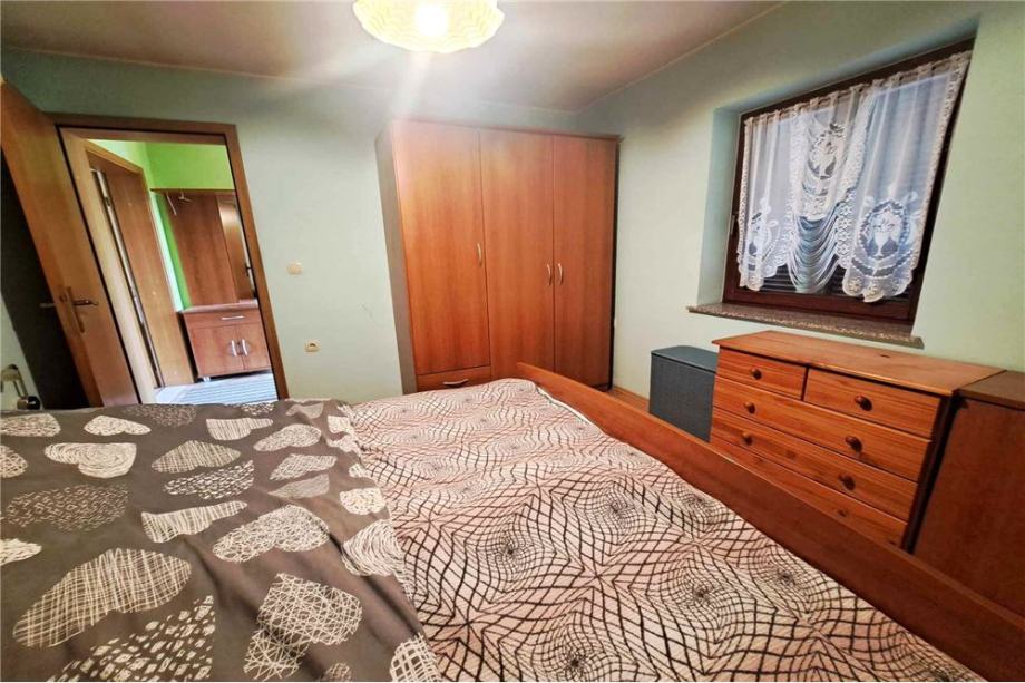 Stanovanjska hiša je opečne gradnje, okna so iz PVC materiala, podi so laminati ali keramične ploščice. Tloris hiše je razdeljen na hodnik, iz katerega vstopimo v vse prostore spalnico, dnevno sobo z izhodom na teraso, kuhinjo z jedilnico. Kopalnica je prostorna, v njej se nahaja tuš, vsa sanitarna oprema in pralni stroj. Hiša je podkletena, razdeljena je na garažo in dva kletna prostora. V mansardo je dostop iz zunanje strani. Prostori so zelo lepo vzdrževani. Narejena je tudi zunanja, 8 cm izolacija. Ogrevanje je le na peč štedilnik, ki se nahaja v dnevni sobi. Hiša je priključena na elektriko in javni vodovod, urejena je greznica.