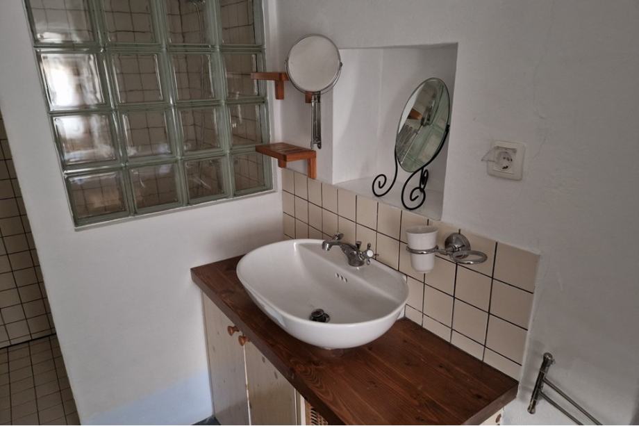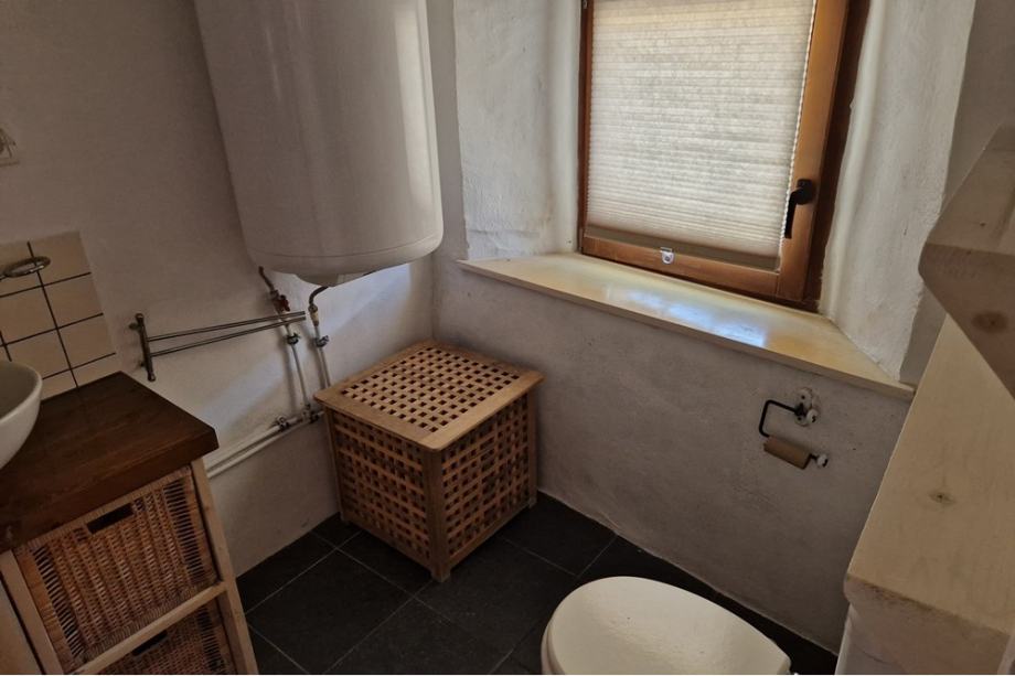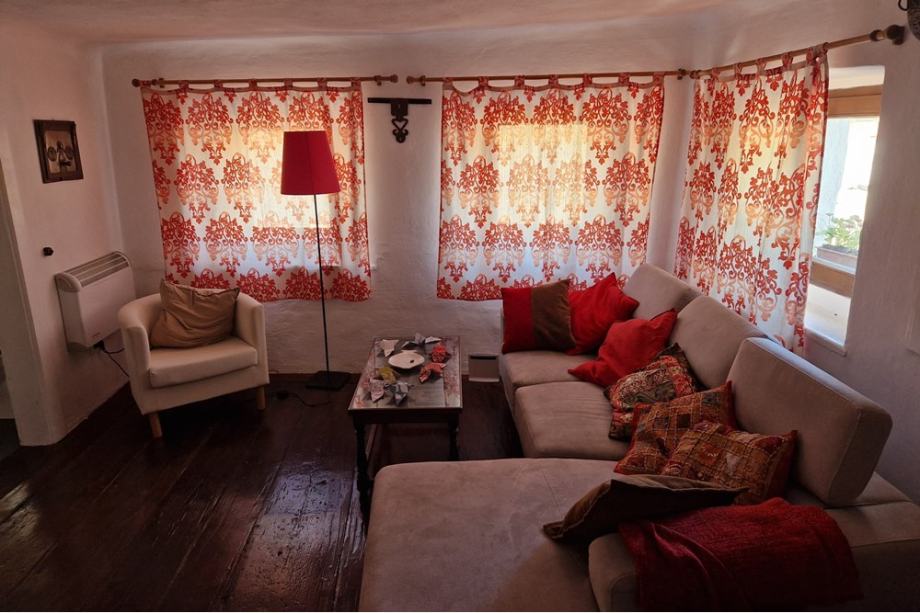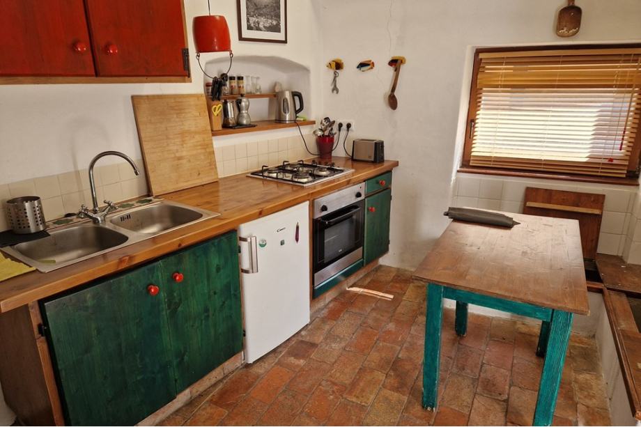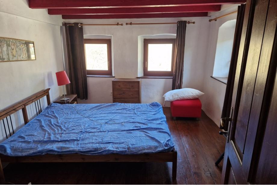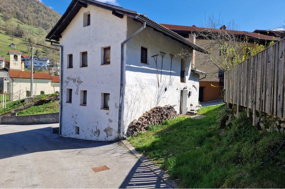 Mala hiška z vrtom v hribih nad Tolminom. Tradicionalna mala hiša na podeželju. V pritličju kuhinja, jedilnica, dnevni prostor in kopalnica. V nadstropju dve spalnici plus mansardna spalnica. V uporabi kot vikend hiška in za turistično oddajo. Parkiranje ob hiši. Brez dodatnih stroškov nakupa.
