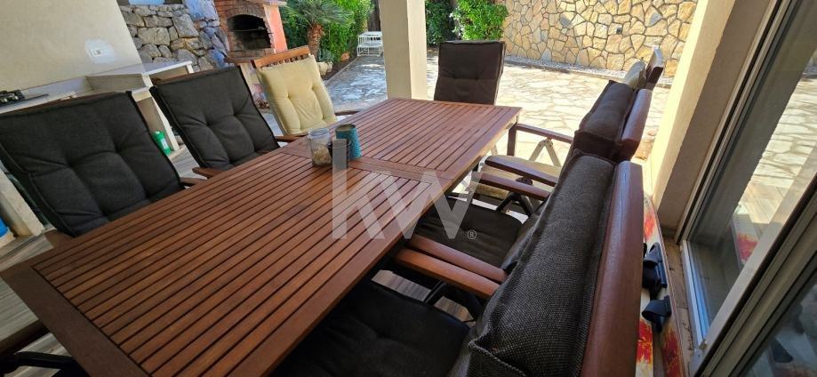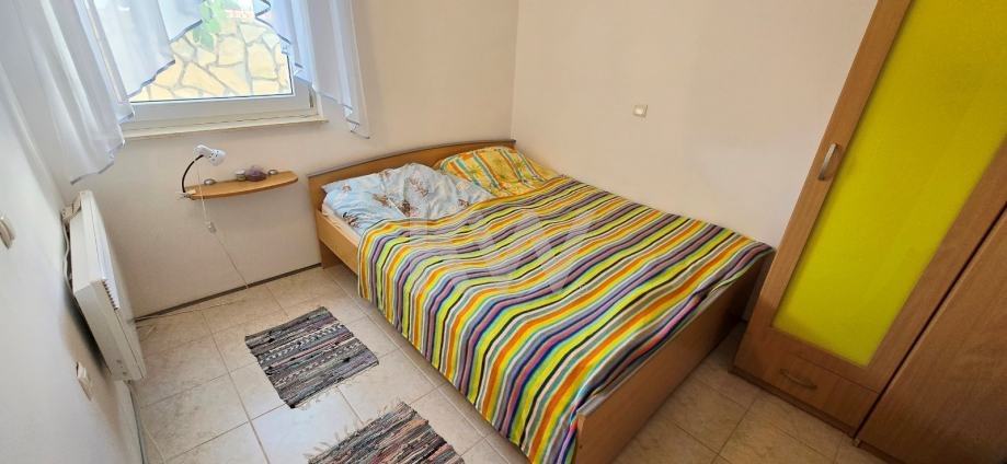Sestavljeno je iz hodnika, kuhinje, prijetne velikosti kopalnice, treh spalnic in dnevne sobe z jedilnico. Od tega sta dve otroški sobi, ena pa je dvoposteljna, vendar je možno prostor drugače urediti in prilagoditi svojim potrebam. Iz dnevne sobe je izhod na pokrito teraso in lepo urejen vrt, ki je večinoma tlakovan s kamnom. Prostor je zasnovan tako, da lahko čim več časa preživite na vrtu, zato so poleg številnih mediteranskih rastlin in visoke kamnite ograje, ki zagotavlja popolno intimo, na voljo tudi zidani žar, zunanji tuš, letna kuhinja, kamnit vodnjak. , prostor za sončenje, otroška igrala in dovolj prostora za postavitev večjega montažnega bazena ter vrtne hiške. Stanovanju pripada eno parkirno mesto pred stavbo. Objekt je legaliziran, etažna lastnina pa je v postopku, zato stanovanja ni možno kupiti preko stanovanjskega kredita. Priložnost za vse, ki si želijo pritlični apartma v mestu Krk s tremi spalnicami in velikim vrtom!