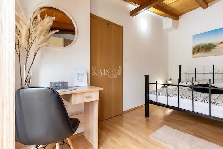 Kaiser Immobilien predstavlja čudovite hiše z bazenom na odlični lokaciji v bližini Fažane. Na prodaj dve hiši z bazenom, istrskega dizajna in pristnega videza, na iskani lokaciji. Hiše delujejo kot ena celota in se kot take prodajajo. Nahajajo se na mirni lokaciji na koncu slepe ulice, kar dodatno zagotavlja njihovo zasebnost. Hiše imajo skupno bivalno površino 164 m2 z urejenim vrtom okoli 400 m2. Prva hiša (90 m2) je sestavljena iz hodnika, treh spalnic, kopalnice in kuhinje z jedilnico ter dnevne sobe z izhodom na pokrito teraso. Zagotavlja čudovit kamin in centralno ogrevanje kot vir ogrevanja pozimi ter klimatske naprave. Za hišo so plačane tudi vse komunale in prispevki za nadstropje. Druga hiša (50 m2) je sestavljena iz kuhinje z jedilnico in dnevno sobo, kopalnice in dveh spalnic. Ponuja prostorno pokrito teraso za druženje. Bazen na vrtu meri 31 m2 in se nahaja med dvema stavbama. Vsa oprema za bazen se nahaja v manjši shrambi, bazen pa ima luksuzno kvadraturo (30 m2) in je slanovoden. Dvorišče je skrbno izkoriščeno in udobno povezuje obe hiši, ponuja shrambo, manjšo delavnico, ki je namenjena preureditvi v savno, zunanji tuš in kamin. Nepremičnine se uspešno oddajajo in so zasedene šest mesecev na leto, zaradi česar so donosne in ponujajo možnost investicije, pa tudi možnost najema ene hiše, medtem ko bivate v drugi. Fažana je oddaljena le dva kilometra, središče Pulja pa je oddaljeno deset minut vožnje. Lokacija ponuja peščico vsebin in aktivnosti, odlična povezljivost vam omogoča, da imate številne vsakodnevne zanimivosti na dosegu roke. Pri turističnem najemu nepremičnina dosega odlične rezultate s skoraj 6-mesečno zasedenostjo na leto. Za več informacij kontaktirajte agenta.