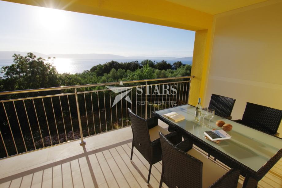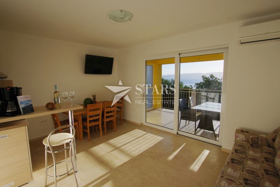 Naprodaj je apartmajska hiša z bazenom in čudovitim panoramskim razgledom na morje in otok Cres, ki se nahaja v mirnem območju približno 10 km od Labina in le nekaj minut hoje od plaže s kristalno čistim morjem.