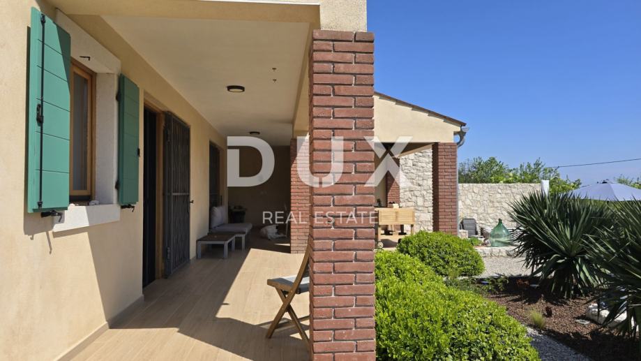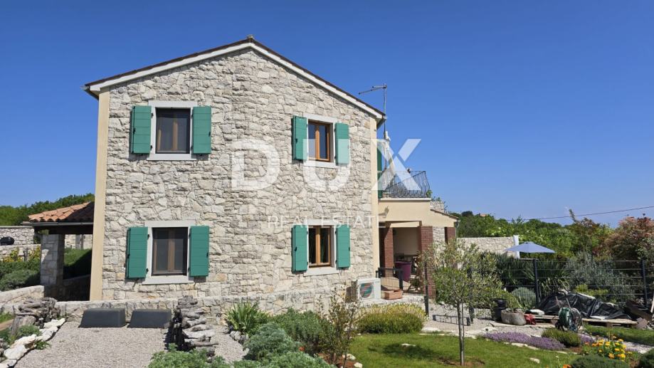 Na hribu nad kristalno čistim Jadranskim morjem, med Puljem in Opatijo, leži ta očarljiva mediteranska kamnita hiša - popolna mešanica istrske tradicije, elegance in sodobnega udobja. Nahaja se v bližini očarljivega mesta Labin, kjer se zgodovinsko jedro in moderno udobje prepletata v edinstvenem ambientu, ki vse bolj privablja ljubitelje pristnega življenjskega sloga. Hiša se razprostira na 173 m² skrbno zasnovanega prostora in ponuja tri svetle spalnice, vsaka s svojim balkonom in dih jemajočim razgledom - morje, zelenje in nebo v popolni harmoniji. Notranjost izžareva toplino in značaj - naravni kamen, les in mediteranske barve ustvarjajo prijetno vzdušje, sodobni elementi, kot sta moderna kuhinja z osmozo za pitno vodo in eleganten kamin, pa vsakdanje življenje dvignejo na višjo raven. V pritličju vas pričaka prostorna dnevna soba z jedilnico in kuhinja odprtega koncepta, z velikimi steklenimi stenami, ki povezujejo notranjost z zunanjo teraso. Razgled se razteza na zasebni bazen in urejen vrt, ki je zasnovan kot prava mediteranska oaza – z dišečimi zelišči, cvetličnimi alejami in kotičkom za sprostitev. Terasa z zunanjo jedilno mizo in žarom je kot nalašč za dolga poletna druženja z družino in prijatelji. Poleg glavne kopalnice je na voljo še dodatna kopalnica za goste, v pritličju pa je tudi praktično stranišče. V kleti je velik, hladen prostor, idealen za vinsko klet ali shrambo. To hišo še dodatno loči dodatna stranska parcela – izjemna priložnost za širitev, vrt, otroško igrišče ali lasten oljčni nasad. Posest je v celoti ograjena, opremljena s 70 m³ rezervoarjem za vodo, kar zagotavlja okolju prijazno in samovzdržno bivanje, varnost in zasebnost pa sta zagotovljeni. Ta hiša ni le naložba v nepremičnine – je življenjski slog. Kraj, kjer se lahko upočasnite, globoko zadihate in resnično uživate v vsakem trenutku – pa naj gre za stalno bivanje, luksuzne počitnice ali turistični najem.