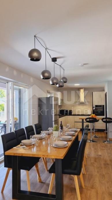 V vzhodnem delu Istre, le tri kilometre od morja, se nahaja srednjeveško mestece Labin, mesto bogate zgodovine in kulturne dediščine, danes mesto galerij in umetnikov, ki tukaj ustvarjajo in živijo vse leto. Glavni mestni trg vas bo navdušil z odlično ohranjeno ložo iz 16. stoletja, iz katere izvirajo glavna mestna vrata sv. Flora. Nad vrati sta vklesan grb Labina in beneški lev, simbol vladavine Benetk. Med sprehodom po mestu boste odkrili top iz avstrijskega obdobja in še vrsto drugih zanimivih podrobnosti. Ta čudovita vila z bazenom je naprodaj v bližini Labina. Sestoji iz pritličja in prvega nadstropja v skupni izmeri 249 m2. V pritličju je odprta kuhinja z jedilnico in dnevno sobo, dve spalnici z lastno kopalnico in še ena kopalnica. Za druženje je na voljo tudi ločen prostor z žarom, jedilnica in popolnoma opremljena kuhinja. V nadstropju sta še dve sobi s kopalnico. Vse sobe v hiši imajo laminat, razen kopalnic, kjer so ploščice. Centralno ogrevanje na pelete je napeljano po celotni hiši, poleg spalnic pa se klima nahaja tudi v dnevni sobi in v pomožnem prostoru. Na voljo je 38 m2 velik bazen, ležalnik in ležalniki za sprostitev ter namizni tenis na prostornem urejenem vrtu. Hiša ima namakalni sistem. Prodaja se opremljena. Idealna nepremičnina za turistični najem ali luksuzno družinsko življenje.