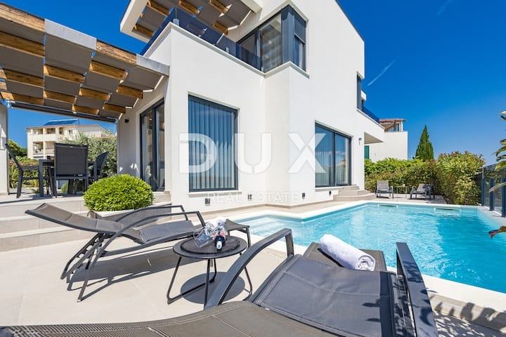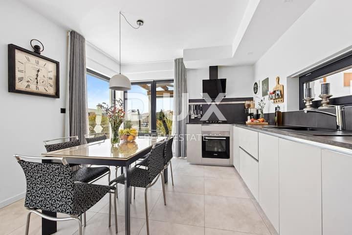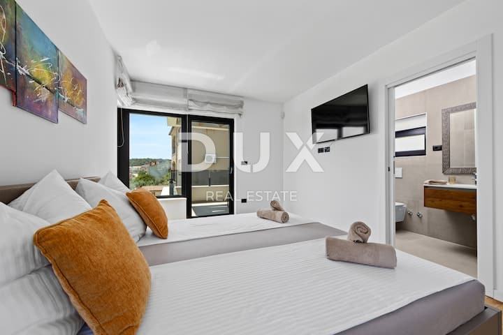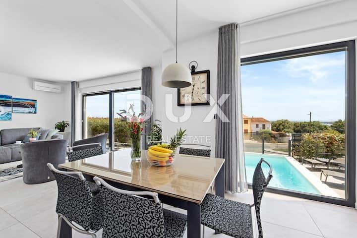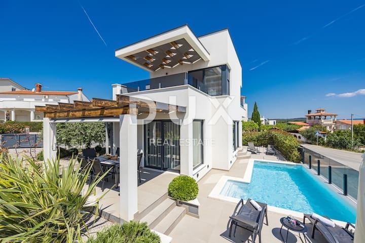 ISTRA, LIŽNJAN – Moderna samostojna vila z bazenom in panoramskim razgledom na morje, v mirnem okolju, le 500 m od palač.
