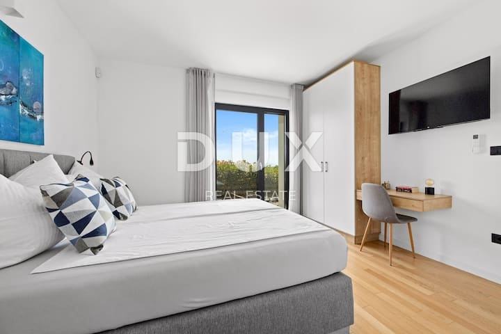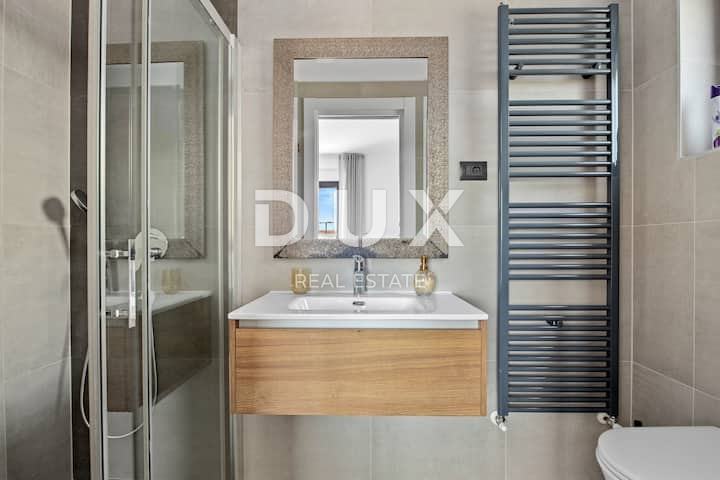 V mirnem delu Ližnjana, le nekaj minut hoje od plaž in vseh ugodnosti, potrebnih za življenje, se nahaja ta moderna samostojna vila – nepremičnina, ki združuje sodobno udobje, privlačen dizajn in zasebni zunanji prostor z ohranjenim panoramskim razgledom na morje. Vila se razprostira na dveh nadstropjih, ima skupno površino 130 m² in se nahaja na urejeni in ograjeni parceli velikosti 450 m², z bazenom in mediteranskim vrtom. Ta vila predstavlja popolno ravnovesje med arhitekturo, funkcionalnostjo in lokacijo ob morju. OPIS VILE: Pritličje vile sestavlja predsoba z namenskim prostorom za garderobno sobo, ki nas nato uvede v odprto dnevno sobo z jedilnico in moderno opremljeno kuhinjo, prostor, v katerem prevladujejo velike steklene stene in dostop do pokrite terase in dvorišča. V pritličju vile se nahajajo tudi stranišče za goste, prva spalnica z lastno kopalnico in praktična shramba. Notranje stopnišče nas vodi v prvo nadstropje vile, kjer se nahajata dve spalnici, vsaka s svojo kopalnico in dostopom do zasebnih teras s panoramskim razgledom na morje - razgled, ki bo zaradi skrbno izbrane lege vile ohranjen tudi v prihodnosti. OPIS VRTA: Dvorišče vile ponuja popoln mir in uživanje na prostem, na voljo je udoben 25 m² velik bazen s prostorom za sončenje, pokrita terasa z jedilnico in mediteranski vrt. Dvorišče je v celoti ograjeno, kjer lahko uživate v pogledu na morje, medtem ko se zabavate s prijatelji in družino. Različne mediteranske rastline ustvarjajo posebno vzdušje na dvorišču, za vaše hišne ljubljenčke pa je na dvorišču majhna trata, ki je kot nalašč za brezskrbno igro in zabavo. Na voljo je tudi žar, idealen za pripravo vaših najljubših dobrot, ter dve zasebni parkirni mesti, ki ju lahko pokrijete. DODATNE INFORMACIJE: * Vila je zgrajena in opremljena s poudarkom na vzdržljivosti in udobju: * Centralno plinsko ogrevanje in kamin v dnevni sobi * Štiri klimatske naprave, po ena v vsaki spalnici in dnevnem prostoru * Toplotna izolacija fasade (8 cm polistiren) * Talne obloge: kombinacija parketa in keramike * PVC stavbno pohištvo z roletami na vseh oknih in vratih * Vsaka kopalnica ima svoje okno za naravno svetlobo in prezračevanje * Nepremičnina se prodaja popolnoma opremljena, z urejenim lastništvom (1/1), uporabnim dovoljenjem ter legaliziranim bazenom in pomožnim objektom. LOKACIJA: Vila se nahaja na koncu mirne in slepe ulice, le 500 metrov od urejenih plaž in sprehajališč ob morju. V neposredni bližini so na voljo vse ugodnosti, potrebne za življenje ali počitnice: trgovine, restavracije, šole, kavarne in vse ostalo, kar omogoča udobno življenje. Vila je dobro povezana s Pulo, Medulinom in preostalo Istro, od letališča Pula pa je oddaljena le 15 minut vožnje. ZA KOGA JE TA NEPREMIČNINA? Ta vila v Ližnjanu je idealna za tiste, ki iščejo moderno, funkcionalno in mirno obmorsko okolje. Ne glede na to, ali gre za družinsko hišo, drugo počitniško hišo ali naložbo v turistični najem – ta nepremičnina ponuja popolno kombinacijo zasebnosti, kakovosti in privlačne lokacije. ZA INVESTITORJE: Zaradi svoje lege, privlačnega razgleda, razporeditve prostora in bazena ima vila velik potencial za turistični najem v višjem cenovnem razredu. Zaradi samostojne zasnove, zasebnosti in popolne opreme je zaželena nepremičnina v turistični ponudbi. Za dodatne informacije in dogovor za ogled smo vam na voljo.