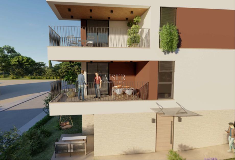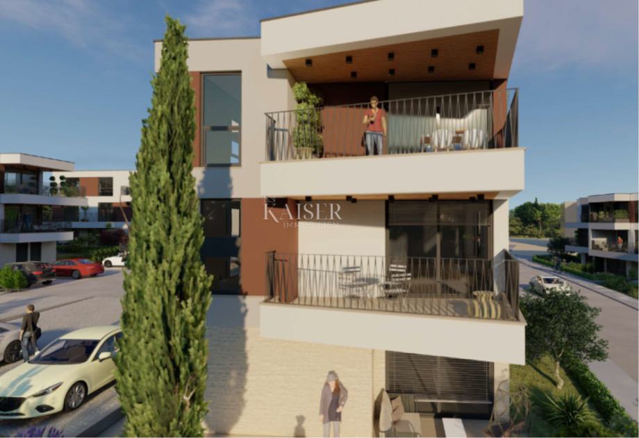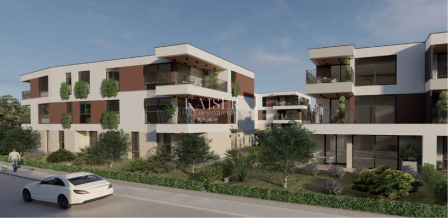 Kaiser Immobilien predstavlja novo moderno stanovanje v pritličju le deset minut hoje do morja, na zelo atraktivni turistični lokaciji. Stanovanje se nahaja v stanovanjski stavbi s 3 povezanimi nadstropji, v kompleksu popolnoma novega modernega naselja. Stanovanje obsega dve spalnici, kuhinjo, dnevno sobo in jedilnico, kopalnico in hodnik. Stanovanju pripada parkirno mesto in vrt okoli stanovanja cca 100 m2 V ceno stanovanja je vključena 1 klima za ogrevanje in hlajenje, kopalniška sanitarija (vse razen ogledala in zgornje omarice), keramika po želji investitorja. izbira, sobna vrata, vtičnice in stikala z maskami ter optika (hitrejši internet). V kolikor želite stanovanje še kaj spremeniti ali dopolniti, kot je talno gretje, je vse možno po predhodnem dogovoru z investitorjem. Objekt se bo začel graditi konec letošnjega leta, predviden zaključek pa je 2024. Stranka si sama izbere parkirna mesta na kateri poziciji želi, pri čemer se lahko odloči ali želi eno parkirno mesto ali dve. Glede na odlično lokacijo in bližino plaž in vseh vsebin je to stanovanje odlična priložnost za nadaljnjo investicijo ali novo življenje na atraktivni lokaciji v lepem, mirnem in modernem naselju. Če želite, da to lepo, novo in moderno stanovanje postane vaš novi dom, kontaktirajte agencijo Kaiser Immobilien in ga pravočasno rezervirajte.