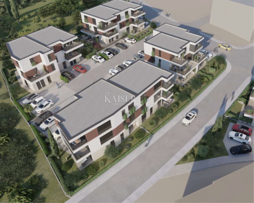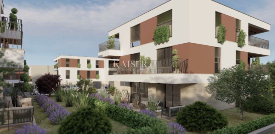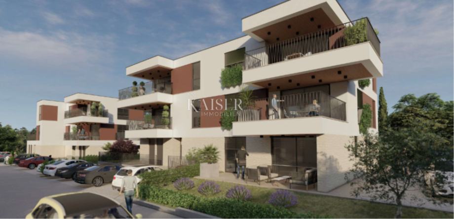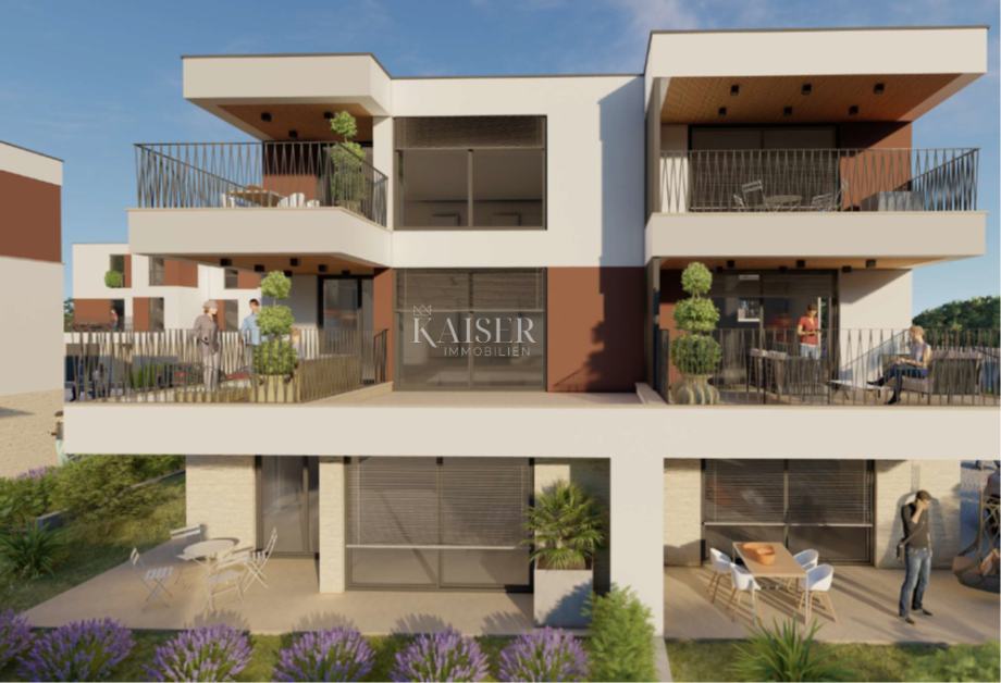 Kaiser Immobilien predstavlja novo moderno stanovanje v pritličju stavbe, le deset minut hoje do morja, na zelo atraktivni turistični lokaciji. Stanovanje se nahaja v stanovanjski stavbi s 3 povezanimi nadstropji, v kompleksu popolnoma novega modernega naselja. Stanovanje obsega dve spalnici, kuhinjo, dnevno sobo in jedilnico, kopalnico, hodnik in pokrito teraso. Stanovanje ima lep udoben vrt 120 m2. V ceno stanovanja je vključena 1 klima za ogrevanje in hlajenje, kopalniška tehnika (vse razen ogledala in zgornje omarice), keramika po izbiri investitorja, sobna vrata, vtičnice in stikala z masko ter optika (hitrejši internet). V kolikor želite stanovanje še kaj spremeniti ali dopolniti, kot je talno gretje, je vse možno po predhodnem dogovoru z investitorjem. Objekt se bo začel graditi konec letošnjega leta, predviden zaključek pa je 2024. Stranka si sama izbere parkirna mesta na kateri poziciji želi, pri čemer lahko izbira ali želi eno parkirno mesto ali dve. Glede na odlično lokacijo in bližino plaž in vseh vsebin je to stanovanje odlična priložnost za nadaljnjo investicijo ali novo življenje na atraktivni lokaciji v lepem, mirnem in modernem naselju. Če želite, da to lepo, novo in moderno stanovanje postane vaš novi dom, kontaktirajte agencijo Kaiser Immobilien in ga pravočasno rezervirajte.