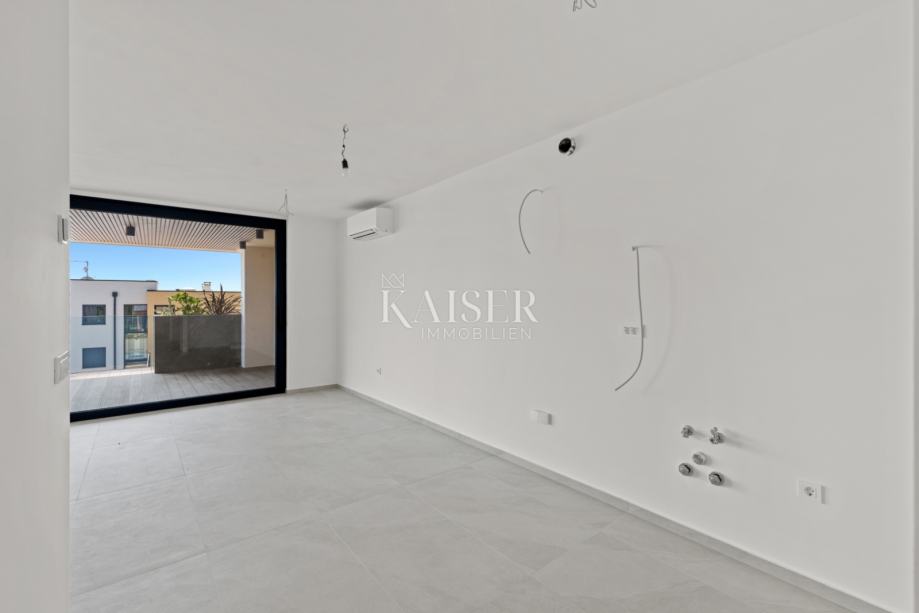 Stan APL Kaiser Immobilien ponuja v prodajo luksuzno novogradnjo v Novigradu, le 800 m od morja, lepih plaž in starega mestnega jedra. Novigrad je dobro povezan z vsemi deli Istre, pa tudi s sosednjimi državami in je oddaljen le 5 minut vožnje po avtocesti. Gradnja vključuje 2 ločeni stavbi s skupno 16 stanovanji. Oba objekta se razprostirata v 3 etažah. in imajo pogled na morje. Parkirni prostor je zagotovljen s 24 pokritimi parkirnimi mesti in shrambo za vsako stanovanje. Objekti bodo opremljeni z dvigalom, videonadzorom vhodnega prostora in kolesarnico. Ta vrhunska stanovanja v elitnem delu Novigrada bodo opremljena z vrhunsko italijansko keramiko, ki se odlično poda k vsakemu dizajnu, s prvovrstnim hrastovim parketom pa bo celotna zgodba dobila končni, glamurozni stil. Vgrajujejo se stranišča Catalano Italy 52 s sistemom soft close, umivalnik Inda Village z armaturo za umivalnik Paffoni Light, armatura za tuš Paffoni Light z dežnim efektom in ročajem ter vrata za tuš kabino Novellini Kali 2P. -Okna in panoramske zastekljene stene so izdelane iz kvalitetnih PVC/ALU profilov z dvojno izo steklom, z aluminijastimi polkni na električni pogon. Skladiščni prostori so opremljeni z mehanskim in naravnim prezračevanjem, prvovrstno keramiko, stene ometane in pleskane s poldisperzijsko barvo. Garaže in parkirna mesta bodo imela glavno vhodno rampo z daljinsko vodenim elektromotorjem, pripravo za polnilnice električnih vozil, video nadzor ter varnostna in protipožarna vhodna vrata, ki povečujejo stopnjo varnosti in zagotavljajo mir. Urejanje okolice je predvideno z zasaditvijo mediteranskih rastlin in dreves, ki bodo celoten projekt povzdignili na višjo raven hortikulturne ureditve te čudovite mediteranske rezidence za naše bodoče kupce. Za pritlična stanovanja in predvsem za vse skupne prostore objekta je vgrajen avtomatski namakalni sistem. Odsek za pešce in vozila bo tlakovan, vgrajena bo meteorna kanalizacija. Talno ogrevanje v celotnem stanovanju in DAIKIN multi split sistem ogrevanja in hlajenja za vsako sobo. Daljinsko upravljanje ogrevalnega in hladilnega sistema preko pametnega telefona. PVC obloga na terasah in obloga stropa terase z letvami. To čudovito stanovanje se nahaja v pritličju. Bivalna površina stanovanja je 81,80m2, ki obsega predsobo, dnevno sobo in kuhinjo, 2 spalnici, 2 kopalnici in shrambo/shrambo, kjer lahko postavite pralni in sušilni stroj ter ostale gospodinjske aparate, ki jih uporabljate vsak dan. Apartma ima pokrito teraso 21,20m2 z zunanjo kuhinjo in prostorom za veliko mizo. Stanovanju pripada tudi 122m2 dvorišča. Stanovanju pripada tudi shramba 4,80m2 in parkirno mesto 12,5m2. Dela so se že začela marca 2024, ta luksuzni projekt pa bo predvidoma pripravljen za vas maja 2025. Ne zamudite priložnosti, da postanete del tega očarljivega obalnega raja, ki še nastaja. Kupec je oproščen plačila davka na nepremičnine v višini 3%. Navedena cena 564.000,00 eur z DDV se nanaša na kvadraturo z vključenimi količniki. Agencijska provizija znaša 3% + DDV Oddaljenost: Letališče Pula - 80 km Ljubljana - 136 km München - 537 km Dunaj - 518 km Praga - 844 km Za dodatne informacije in ogled se obrnite na vašega agenta na e-mail: dean.cvitko@kaiser-immobilien.hr ali telefonsko številko: 00385 91 5284449