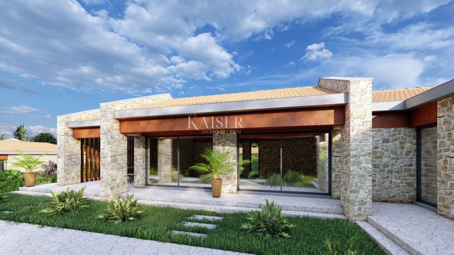 Kaiser Immobilien proda zemljišče z gradbenim dovoljenjem za hišo z bazenom, skupne površine 1215 m2. (V 3) To zemljišče pravilne oblike se nahaja v majhni, mirni vasici z nekaj hišami, 7 km od Motovuna. Poleg številnih kulturnih in zgodovinskih znamenitosti je Motovun znan po dobrih restavracijah in znanih vinarjih. Motovun in njegova okolica se ponašata s številnimi vinogradi, rekreacijskimi objekti, ki omogočajo aktivne počitnice, kot so trgatev, nabiranje špargljev, izkopavanje tartufov, ribolov in številne druge aktivnosti. Na zemljišču bo zgrajena hiša neto površine 124 m2 in bazen v izmeri celo 50 m2. V pritličju je kuhinja, jedilnica in dnevna soba z izhodom na pokrito teraso, predsoba, hodnik, kopalnica, strojnica/pralnica, dve spalnici, vsaka s svojo kopalnico in tretjo sobo, ki jo lahko investitor uredi kot spalnica, delovna soba, igralnica ali savna. Vsi zunanji prostori objekta so orientirani JZ. Vhod v hišo je na severozahodni strani. Bivalni prostori v objektu bodo ogrevani in hlajeni s toplotnimi črpalkami sistema zrak-zrak v izvedbi multi-split sistema z zunanjimi in notranjimi enotami, z razporeditvijo delovnega medija (R410 A, R32, ...) . Poraba tople vode bo rešena z vgradnjo centralnega električnega kotla z vgrajeno toplotno črpalko. Infrastruktura se nahaja ob zemljišču. Bližina vseh vsebin in odlična povezljivost naredijo to lokacijo izjemno praktično in privlačno za vsakdanje življenje ali kot naložbo (Karojba 3km, Motovun 7km, Poreč 20km) Obstaja možnost nakupa sosednjega zemljišča s podobnim projektom, kar zagotavlja dodatno fleksibilnost pri načrtovanju . Posredniška provizija agencije za kupca znaša 3% + DDV. Za vse informacije nas lahko kontaktirate.