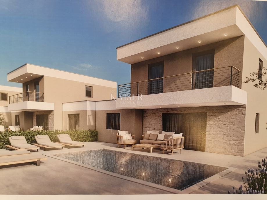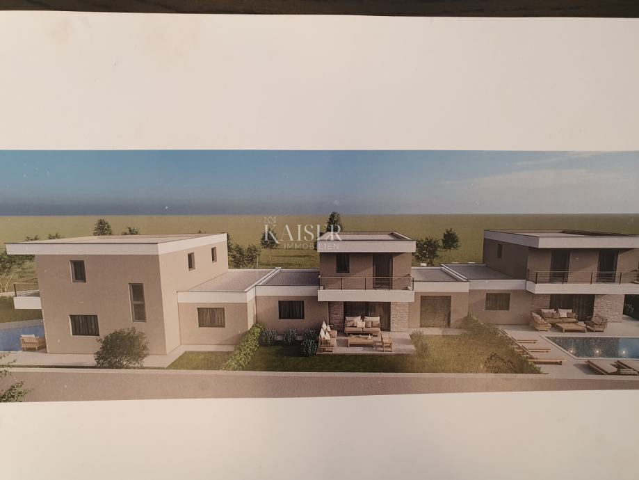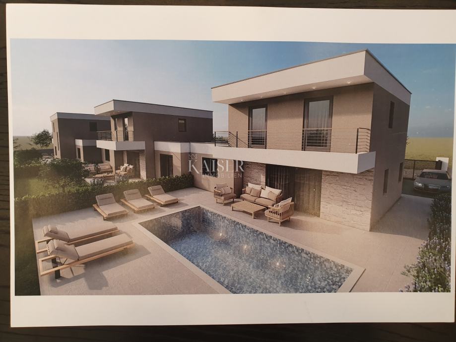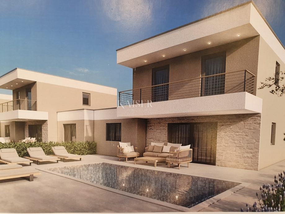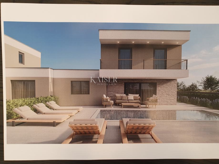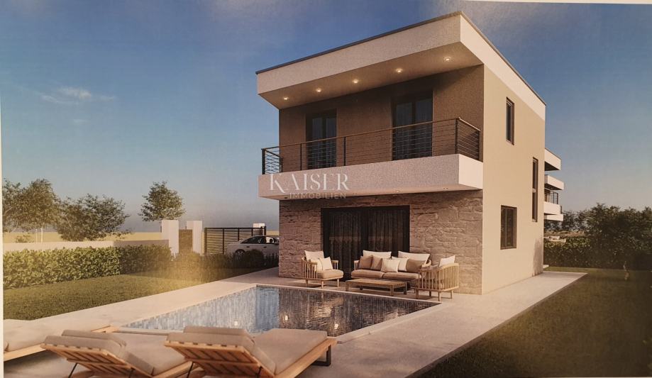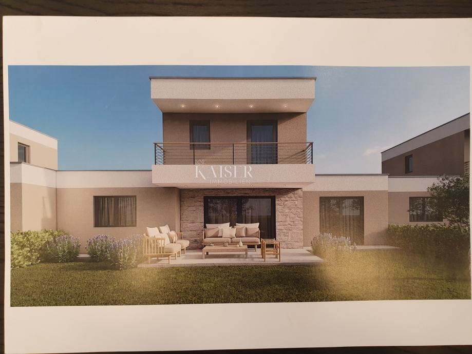 Kaiser Immobilien predstavlja popolnoma novo, moderno hišo z bazenom, nedaleč od mesta Poreč. Hiša se nahaja le 4 km od centra Poreča in le 5 km od morja. Nahaja se na zelo privlačni lokaciji, tako za lokalno prebivalstvo kot za turiste. Osnovni in najnujnejši objekti za življenje se nahajajo v bližini naselja hiše, glede na bližino mesta in drugih manjših naselij. Ta hiša se je že začela graditi in je v rowbau fazi, predviden zaključek hiše pa je najkasneje konec leta. Hiša se nahaja v nizu treh enakih enot. Vsaka hiša ima svoj bazen in lastno dvorišče ter parkirišče za dva avtomobila. Stil gradnje hiše je kombinacija modernega in rustikalnega stila, z dodatkom kamna na fasadi. Hiša je zgrajena z visokokakovostnimi materiali in odlično izolacijo, zato je pozornost namenjena vsaki podrobnosti, da bo bodoči kupec čim bolj zadovoljen. Hiša je sestavljena iz dveh etaž. V pritličju hiše bo ena spalnica, kopalnica, kuhinja in dnevna soba, jedilnica, shramba in strojnica. Dostop do bazena je možen skozi balkonska vrata dnevne sobe. Prostor v pritličju je zasnovan kot open space varianta z veliko svetlobe in sonca. V prvem nadstropju hiše sta še dve spalnici, ena kopalnica in čudovita terasa s pogledom na vas in naravo. Hiša bo ogrevana s talnim gretjem, vsaka soba in dnevna soba pa ima tudi klimatsko napravo. Dvorišče je veliko cca 400 m2, bazen je velik 24 m2. Dostop do hiše je asfaltiran. Do konca leta bodo priključili še mestno kanalizacijo. Oddaljenost nepremičnine od mesta: Poreč - Letališče Pula, 45 km Poreč - Ljubljana, 162 km Poreč - Dunaj, 544 km Poreč - Praga, 868 km Poreč - München, 565 km Če želite, da ta moderna in očarljiva hiša postane vaša nov dom., kontaktirajte posrednika na telefonsko številko 00385 923782803 ali na elektronski naslov: ivana@kaiser-immobilien.hr. Agencijska provizija znaša 3% + DDV.