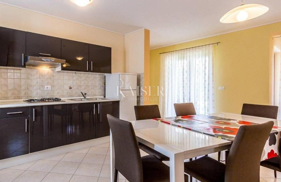 Kaiser Immobilien prodaja hišo z bazenom v mirni vasici 20 km od Poreča. Ta čudovita hiša s skupno površino 140 m² se nahaja na parceli velikosti 600 m². Razporejena je v dveh nadstropjih in ponuja udobje in funkcionalnost, idealno za družinsko življenje ali tiste, ki iščejo mir in zasebnost. V pritličju se nahaja zračna dnevna soba z dostopom do terase, ki ustvarja prijeten prostor za sprostitev in druženje. Tik ob njej je kuhinja z jedilnico, idealna za družinske trenutke. V istem nadstropju se nahajata tudi spalnica in moderno opremljena kopalnica. Notranje stopnišče vodi v prvo nadstropje, kjer se nahajata dve prostorni spalnici, od katerih ima ena svoj balkon s čudovitim pogledom na morje. V istem nadstropju se nahaja tudi elegantna kopalnica, opremljena s pozornostjo do detajlov. Hiša je opremljena s klimatsko napravo za prijetno bivanje skozi vse leto, v dnevni sobi pa je kamin na drva, ki pozimi prinaša toplino in posebno vzdušje. V zunanjem delu nepremičnine se nahaja 24 m² velik bazen z zunanjimi tuši, ki je idealen za osvežitev v toplih dneh. Urejen vrt ima avtomatski namakalni sistem, ki omogoča enostavno vzdrževanje. Zagotovljeni sta tudi dve parkirni mesti. Če iščete dom v mirnem okolju z neposrednim dostopom do narave, na samem robu zelenja, je ta hiša prava izbira za vas! Bližina ustreznih storitev: Poreč, center - 20 km Restavracija - 1 km Kavarna - 2 km Trgovina - 2 km Osnovna šola: 5 km Lekarna: 5 km Plaža - 20 km Za več informacij se obrnite na agenta. Dean Cvitko dean.cvitko@kaiser-immobilien.hr +385 91 5284449