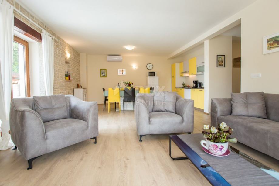 Poreč, ki leži na zahodni obali istrskega polotoka, je eden glavnih predstavnikov istrskega turizma, njegove čudovite plaže pa vas ne bodo pustile ravnodušne. Le nekaj minut vožnje od turističnega središča Poreča, v majhni vasici na hribu, je naprodaj čudovita hiša z bazenom, poudarjenim s kamnitimi elementi. Hiša se nahaja v slepi ulici in je obdana z novejšimi hišami in naravo. Hiša se razprostira na dveh etažah. V pritličju hiše se nahaja kuhinja z jedilnico in dnevna soba (open space koncept) z direktnim izhodom na prostorno pokrito teraso, bazen z zunanjim tušem in prostorom za sončenje. Na voljo je tudi ena spalnica s kopalnico. Po notranjih stopnicah se povzpnemo v prvo nadstropje hiše, kjer so še tri spalnice, dve kopalnici in terasa. Ob bazenu je letna kuhinja z žarom. Hiša se prodaja brez pohištva. Če želite začeti mirno družinsko življenje ali investirati v turizem, je ta hiša odlična izbira. Hiša je kategorizirana s 4* in je priljubljena med gosti, ki se radi vračajo. NEPREMIČNINA VREDNA VAŠE POZORNOSTI!