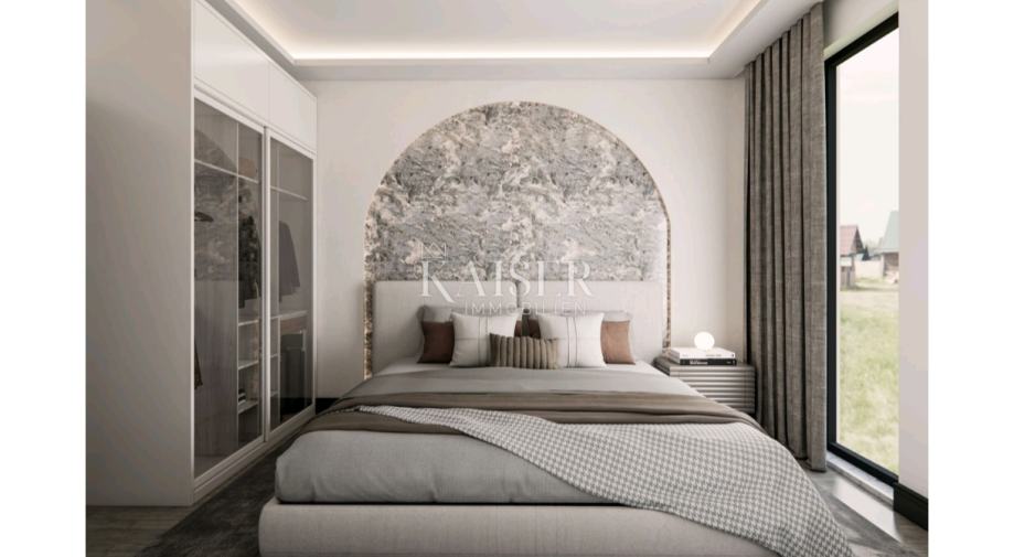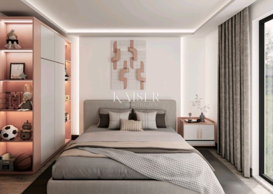 Stanovanje D – Stavba C Kaiser Immobilien predstavlja prostorno trisobno stanovanje, ki se nahaja v 1. nadstropju moderne novogradnje, le 3 km od središča Poreča in 800 metrov od morja in prvih plaž. Stanovanje se nahaja v mirnem, novozgrajenem delu naselja, obdanem z moderno infrastrukturo, zaradi česar je ta lokacija idealna tako za prijetno družinsko življenje kot za vlaganje v turistične najeme. Projekt vključuje dve moderni stavbi, vsaka s skupno petimi stanovanjskimi enotami, skrbno zasnovani za zagotavljanje visoke ravni udobja, funkcionalnosti in kakovosti bivanja. Stanovanje D ima skupno neto površino 91 m² in ga sestavljajo: - vhodna dvorana - prostorna dnevna soba velikosti 30 m², povezana s kuhinjo in jedilnico v odprtem tlorisu - pokrita terasa velikosti 9 m², dostopna iz dnevnega prostora - tri udobne spalnice - moderne kopalnice - dodatno ločeno stranišče za goste Notranjost stanovanja je skrbno zasnovana s poudarkom na funkcionalni razporeditvi, naravni svetlobi in udobju vsakdanjega bivanja. Stavba je zgrajena v zidanem gradbenem sistemu z visoko stopnjo toplotne in zvočne izolacije. Stanovanje je opremljeno z: - troslojnimi PVC okni z električnimi roletami in komarniki - varnostnimi vhodnimi vrati - visokokakovostnim notranjim stavbnim pohištvom - talnim ogrevanjem v vseh prostorih preko sistema toplotne črpalke - klimatsko napravo v dnevni sobi in spalnicah - video domofonom za dodatno varnost in udobje - dimnikom, ki omogoča vgradnjo kamina ali peči na trda goriva Stanovanju pripada eno parkirno mesto, ki je vključeno v ceno. Nepremičnina ponuja idealno kombinacijo mirne stanovanjske lokacije, bližine vseh potrebnih storitev (trgovine, šole, vrtci, restavracije) in vrhunske gradnje - zaradi česar je odlična izbira tako za stalno bivanje kot za investicijo z visokim potencialnim donosom prek turističnega najema. Ob nakupu tega stanovanja kupec ne plača 3 % davka na promet nepremičnin. Za dodatne informacije in za organizacijo ogleda nas kontaktirajte z zaupanjem: Dean Cvitko E-pošta: dean.cvitko@kaiser-immobilien.hr Tel: +385915284449 http://kaiser-immobilien.hr/