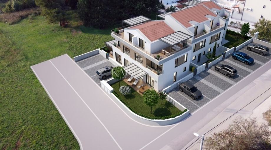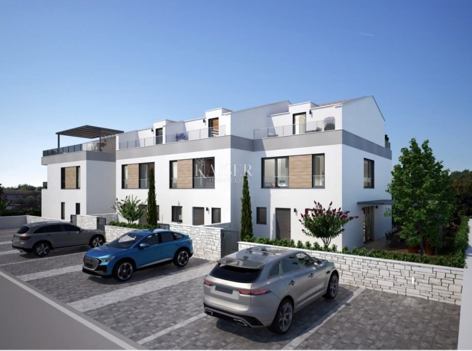 Kaiser Immobilien predstavlja čudovito novo družinsko hišo v bližini mesta Poreč. Hiša se nahaja na mirni lokaciji na obrobju mesta, le nekaj minut od morja in nekaj minut od nakupovalnih središč mesta Poreč in vseh bistvenih dobrin. Hiša se bo nahajala v nizu, na zelo priljubljeni in atraktivni, a hkrati mirni lokaciji. Gradnja hiše se je začela letos, dokončanje pa je predvideno konec leta. Hiša je sestavljena iz pritličja, prvega nadstropja in mansarde ter vrta z dvema parkirnima mestoma. V pritličju hiše bo: predsoba, manjši WC, kuhinja, jedilnica in dnevna soba, pralnica in tehnični prostor ter nepokrita terasa neto površine 3,56m2. . V prvo nadstropje vodi tudi stopnišče. V prvem nadstropju bosta dve spalnici in pripadajoči dve kopalnici, garderobna omara in stopnišče, ki vodi v mansardo. V mansardi hiše bo še ena prostorna spalnica in kopalnica ter garderobna omara ter dve nepokriti terasi s čudovitim pogledom na vas in zelenje narave. Hiša bo ogrevana s talnim električnim gretjem, vsaka soba in dnevna soba pa bo imela klimatsko napravo. Hiša se nahaja na robu vasi, s pogledom na naravo in zelenje. Voda se bo odvajala preko lastne greznice. V tej fazi lahko novi lastnik vpliva na gradnjo in obstoječemu projektu kaj doda ali spremeni. Plačilo poteka v 3 fazah. Oddaljenost nepremičnine od mesta: Poreč - Letališče Pula, 45 km Poreč - Ljubljana, 162 km Poreč - Dunaj, 544 km Poreč - Praga, 868 km Poreč - München, 565 km Ta nepremičnina je idealna priložnost za družinsko življenje ali turistična investicija na odlični in zelo priljubljeni lokaciji. Če želite, da ta nova čudovita hiša postane vaš novi dom, kontaktirajte agenta na telefonsko številko 00385 923782803 ali na elektronski naslov: ivana@kaiser-immobilien.hr. Agencijska provizija znaša 3% + DDV.