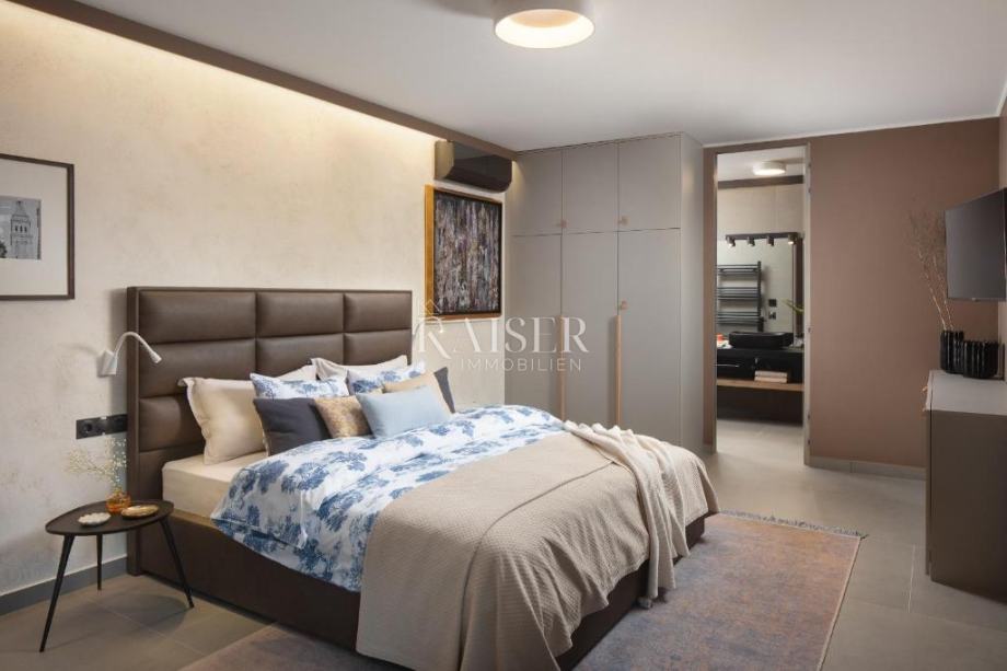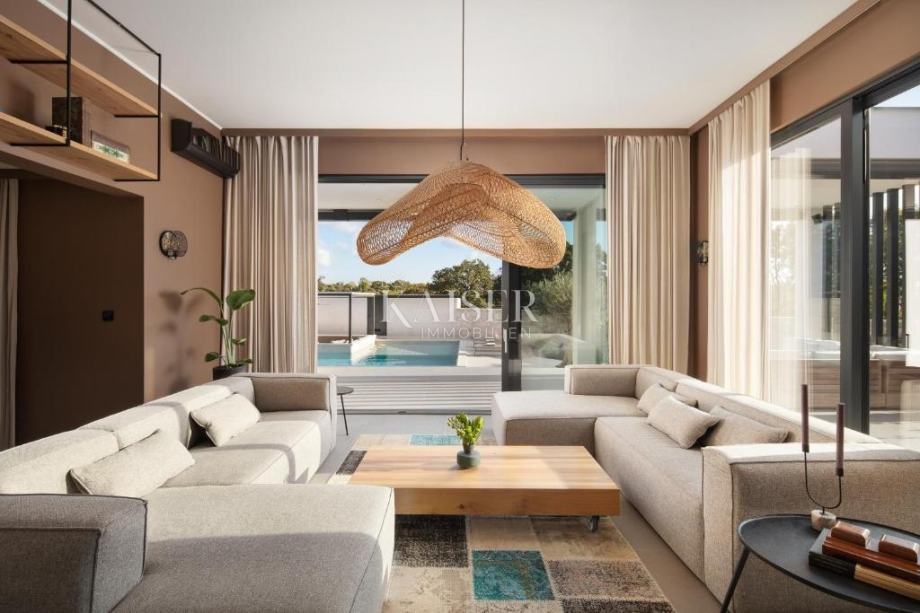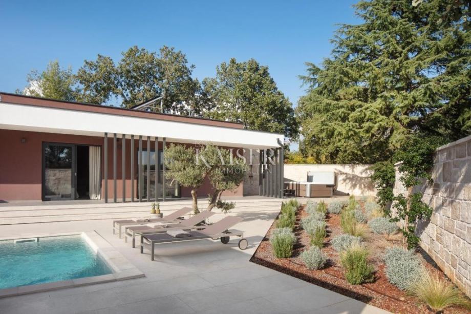 Rovinj, biser Istre, je eno najbolj očarljivih obalnih mest na Jadranu. Slikovite tlakovane ulice, značilen zvonik cerkve sv. Evfemije in slikovita obala ustvarjajo edinstveno mediteransko vzdušje. To zgodovinsko mesto ponuja bogato kulturno dediščino, vrhunska gastronomska doživetja in kristalno čisto morje, zaradi česar je popolna destinacija za počitnice in bivanje. Kaiser Immobilien vam predstavlja vilo, razkošno pritlično hišo velikosti 200 m², ki se nahaja le 12 kilometrov od čarobnega Rovinja, na zelo mirni in idilični lokaciji. Ob vstopu v vilo, skozi varnostna vrata s kodno ključavnico, vas pričaka eleganten vhodni prostor velikosti 7,07 m², ki že sam po sebi razkriva razkošen značaj in hedonistični duh same nepremičnine. Visoki stropi, visoki 3 metre, še dodatno poudarjajo zračnost in ekskluzivnost prostora. Levo od vhoda je prva spalnica, pred njo pa je 5 m² velika garderobna soba z vgradnimi omarami, spalnica pa se razteza na impresivnih 22,54 m². Opremljena je z LG Smart TV in LG Dual Inverter klimatsko napravo, pohištvo pa je v celoti izdelano po meri. Soba ima svojo 5,77 m² veliko kopalnico s tušem, straniščem in radiatorjem za brisače ter neposreden dostop do terase in bazena, kar omogoča popolno mešanico notranjosti in zunanjosti. Druga spalnica je prav tako moderno opremljena, z lastno 4,3 m² veliko garderobo in 17,32 m² veliko spalnico, prav tako opremljeno s pohištvom po meri, LG Smart TV in klimatsko napravo. 4,5 m² velika kopalnica s tušem in straniščem sledi visokim standardom udobja in oblikovanja, soba pa ponuja neposreden dostop do terase. Tretja spalnica se razteza na 22,73 m² in ima svojo 6,81 m² veliko kopalnico, prav tako s tušem, straniščem in oknom, ki omogoča naravno svetlobo in prezračevanje, tako kot ostale kopalnice. Vsaka spalnica ima neposreden dostop do zunanjega prostora z bazenom, kar zagotavlja zasebnost in razkošje za vsakega družinskega člana ali gosta. Osrednji del vile sestavlja prostoren odprt prostor, ki združuje kuhinjo, jedilnico in dnevno sobo. Kuhinja s površino 20,03 m² je izdelana po meri in opremljena z vrhunskimi aparati, kot so pečica Bosch širine 90 cm, indukcijska kuhalna plošča z vgrajeno napo Elica in hladilnik Samsung side-by-side. Jedilnica s površino 23,07 m² in veliko mizo za deset oseb ponuja neoviran pogled na urejen vrt in bazen, z neposrednim dostopom do terase. Dnevna soba s površino 34,04 m² ustvarja domače vzdušje zahvaljujoč sodobnemu kaminu in LG Smart TV. Notranjost, ki izžareva sodobno eleganco in brezčasno razkošje, je ustvarila oblikovalka Zinka Blagus, katere prepoznavni podpis se odraža v harmoniji prostora, izbiri materialov in harmoničnih linijah pohištva po meri. Funkcionalnost vile še dodatno poudarja 7,16 m² velika kotlovnica, v kateri je nameščen celoten sistem talnega ogrevanja na toplotno črpalko, priključeno na sončne panele, ki ogrevajo bojler. V tem prostoru se nahaja tudi pralnica s pralnim in sušilnim strojem. Ob vili se nahaja zunanje stranišče s površino 3,54 m² s tušem. Celotna hiša je opremljena s talnim ogrevanjem, vsaka soba pa ima svojo invertersko klimatsko napravo za hlajenje in ogrevanje. Vila je prek aplikacije SmartThings v celoti povezana s sistemom pametnega doma FIBARO socket, opremljena je z nadzornimi kamerami, zvočnim sistemom Sonos in ambientalno osvetlitvijo, ki ustvarja popolno vzdušje. Vrt velikosti približno 600 m² je v celoti hortikulturno urejen, s poudarkom na lokalnih sredozemskih rastlinah, kot so sivka, nesmrtnica, rožmarin in puščavska vrtnica. Poseben dekorativni element sta dve stoletni oljki, skupaj s tremi mlajšimi, ki krasijo območje bazena, pet istrskih hrastov pa zagotavlja naravno senco. Pokrite zunanje terase s skupno površino 75 m² so opremljene z dnevno sobo in jedilnico za deset oseb, štiri električne tende pa zagotavljajo zaščito pred soncem ves dan. Osrednji del zunanjosti je bazen v obliki črke L, velik 56 m², dimenzij 10x4 m in 4x4 m, z globino 140 cm in 45 cm. Bazen se ogreva in hladi s toplotno črpalko, za lažje vzdrževanje pa je obložen s hladilnim materialom. V njegovem podaljšku se nahaja paviljon z mini barom in umivalnikom, idealen za večerna druženja s svetlobnimi učinki. Pomožni objekt, velik 18 m², služi kot shramba za bazensko opremo, za hladnejše dni pa je na voljo hidromasažni bazen. Zadnji del hiše krasi prostor za žar, v celoti iz kamna, z zunanjim umivalnikom s toplo in hladno vodo. Vrt ima avtomatsko namakanje, na dvorišču pa je prostor za tri avtomobile, opremljen s polnilnico za električna vozila. Ta luksuzna enonadstropna hiša, kategorizirana s 5 zvezdicami in že dokazana na trgu turističnega najema, se uspešno oddaja v sezoni in predstavlja idealno priložnost tako za zasebno uporabo kot za naložbo z visokim donosom. Vila v bližini Rovinja združuje sodoben luksuz, funkcionalnost in mirno lokacijo ter ustvarja popoln dom za prave ljubitelje elegance in mediteranskega načina življenja. Kaj je v bližini: Restavracija: 1,7 km Plaža: 9 km Trgovina: 6 km Kavarna: 600 m Limski kanal - 3 km Grad Dvigrad: 6 km Sv. Evfemija: 8 km Rovinjski akvarij: 10 km Vinarija Matošević (kavarna & vinarija): 7 km Grad Morosini-Grimani: 12 km Park Punta Corrente: 12 km Dušan Džamonja Park skulptur: 17 km Vlak - Kanfanar: 7 km Letališče Pulj: 34 km Oddaljenost od večjih mest: Rovinj- Ljubljana: 186 km Rovinj- Dunaj: 567 km Rovinj- Budimpešta: 591 km Rovinj- Praga: 838 km Rovinj- München: 587 km Rovinj- Zagreb: 250 km Agencijska provizija za kupca znaša 3% + DDV in se plača v primeru nakupa lastnine, ob sklenitvi prvega pravnega akta. Zainteresirani kupci si nepremičnino lahko ogledajo šele po podpisu pogodbe o nepremičninskem posredovanju. ID-KODA: 127-165 Če si želite nepremičnino ogledati osebno, se obrnite na: Jennifer Hofmann E-pošta: jennifer@kaiser-immobilien.hr Tel.: +385-91-515-0887 http://kaiser-immo
