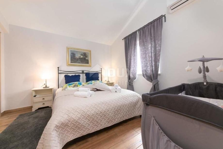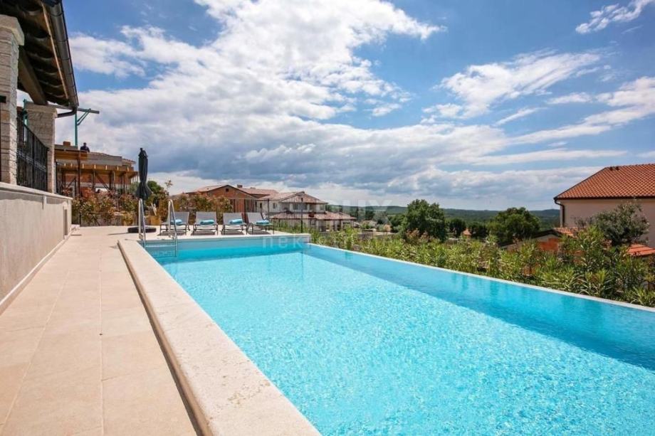 Prodamo čudovito vilo zgrajeno leta 2017, s skupno bivalno površino 350 m2 na parceli 700 m2. Sestavljen je iz kleti, pritličja in prvega nadstropja, medtem ko je spredaj velik bazen in dvorišče. V kleti stavbe je velik prostor za zabavo in sprostitev. Tako tukaj najdemo bivalni prostor z veliko televizijo, biljard, namizni nogomet in namizni tenis ter bogato opremljen fitnes in fitnes kotiček. Pritličje je sestavljeno iz popolnoma opremljene kuhinje z jedilnico, dnevne sobe, ene dvoposteljne sobe in ene kopalnice. V prvem nadstropju vile imamo dostop do čudovitega kamnitega notranjega stopnišča, ki je sestavljeno iz treh prostornih spalnic, od katerih imata dve izhod na teraso s sedežno garnituro s panoramskim razgledom na zelenje in čudovito Sv. Lovreč. Vsaka spalnica ima lastno kopalnico, klimatsko napravo in TV. Iz bivalnega dela vile pridemo na teraso, ki je v celoti tlakovana s kamnom in kjer se nahaja čudovit bazen velikosti 32 m2. Spodaj je urejeno dvorišče s trato in zelenjem. Pred objektom sta dve pokriti parkirni mesti, medtem ko je celotna hiša obdana z visoko ograjo in masivnimi kamnitimi stebri. Nepremičnina se ogreva z inverterskimi klimatskimi napravami, v celotnem pritličju pa je vgrajeno talno gretje. Ta nepremičnina je lahko odlična izbira za nakup varne, kakovostne in energijsko učinkovite hiše za udobno življenje, medtem ko se lahko glede na položaj in utečeno poslovanje naložbo povrne v relativno kratkem času.