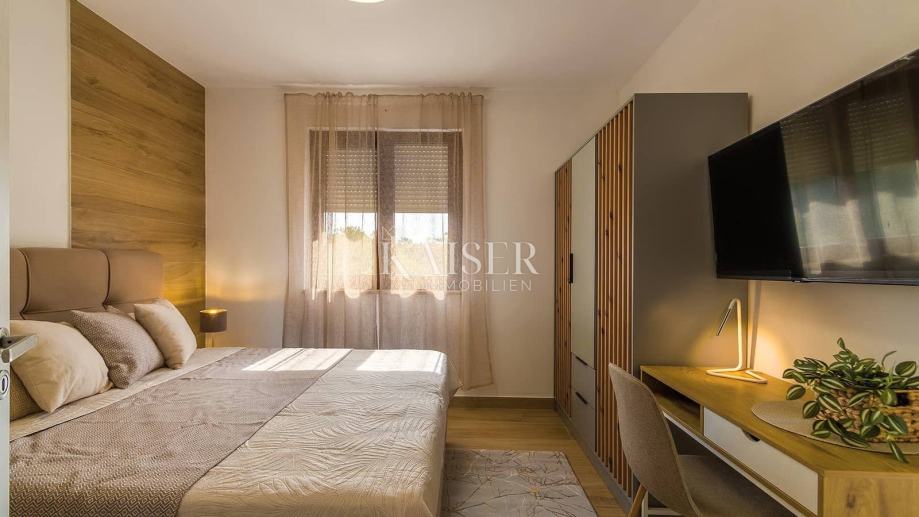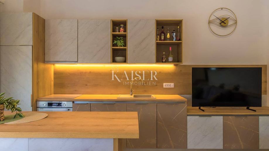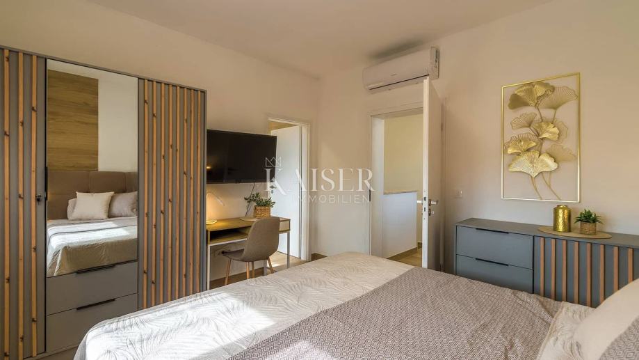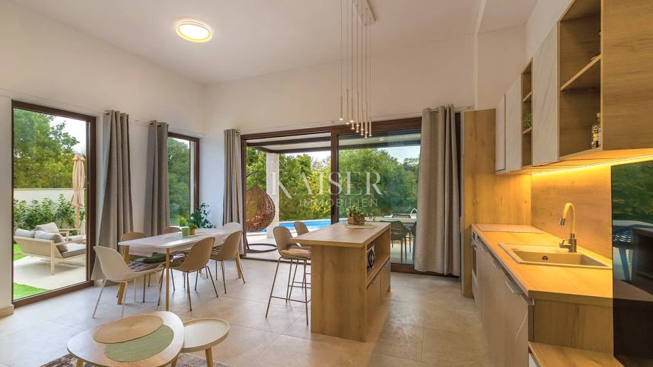Kaiser Immobilien ponuja na prodaj to čudovito moderno dvojno hišo, ki se nahaja v mirnem okolju v bližini Svetvinčenta, na robu vasi, obdane z naravo. Nepremičnina, zgrajena leta 2024, združuje sodoben dizajn, vrhunsko opremo in funkcionalno razporeditev prostorov, kar zagotavlja popolno udobje za celoletno bivanje ali turistični najem. Hiša ima 145 m² bivalne površine, razporejene v dveh nadstropjih, in urejen vrt s 33 m² ogrevanim bazenom, idealnim za uživanje skozi vso sezono. V pritličju se nahajajo vhodna dvorana, kopalnica, ena spalnica in prostorna odprta dnevna soba, povezana s kuhinjo in jedilnico. Iz dnevnega prostora se dostopa do urejenega zunanjega prostora s pokrito teraso in bazenom, kar zagotavlja popolno povezavo med notranjostjo in zunanjostjo. V prvem nadstropju se nahajata preostali dve spalnici, vsaka s svojo kopalnico, kar zagotavlja popolno zasebnost in visoko raven udobja. Hiša je opremljena s talnim ogrevanjem v dnevni sobi, kuhinji in jedilnici, ogrevanje in hlajenje v vseh prostorih pa je regulirano s klimatsko napravo. Vsaka spalnica ima svojo klimatsko napravo, vsaka kopalnica pa električni grelec. Tudi dnevna soba ima svojo klimatsko napravo. Vrt je hortikulturno urejen in prilagojen za brezskrbno uporabo skozi vse leto. Le 5 kilometrov stran se nahaja Savičenta, eno najbolj očarljivih istrskih mest, znano po mirnem vzdušju in bogati zgodovinski dediščini. Središču mesta dominirata renesančni trg in grad Morosini-Grimani, kjer skozi vse leto potekajo številni kulturni dogodki in festivali. V Savičenti so restavracije, gostilne, kavarne, trgovine, pošta in vsi objekti, potrebni za vsakdanje življenje. Mesto ponuja popolno mešanico tradicije, udobja in sodobnih ugodnosti, kar še dodatno dopolnjuje vrednost te nepremičnine kot idealne za bivanje ali turistični najem. Razdalje do ključnih lokacij: - Letališče Pula: 28 km - Reka: 104 km - Trst (Italija): 120 km - Ljubljana: 200 km - Zagreb: 236 km - München: 630 km - Rim: 850 km - Praga: 870 km - Dunaj: 590 km Ta hiša predstavlja popolno kombinacijo sodobnega udobja, elegantnega dizajna in odlične lokacije, agencija Kaiser Immobilien pa zagotavlja profesionalno podporo skozi celoten proces prodaje. Agencija Kaiser Immobilien kot pooblaščeni posrednik pri sklenitvi predpogodbe ali kupoprodajne pogodbe zaračuna posredniško provizijo v višini 3 % + DDV. Za vse dodatne informacije se obrnite na: Deana Cvitka Telefon: +385915284449 E-pošta: dean.cvitko@kaiser-immobilien.hr