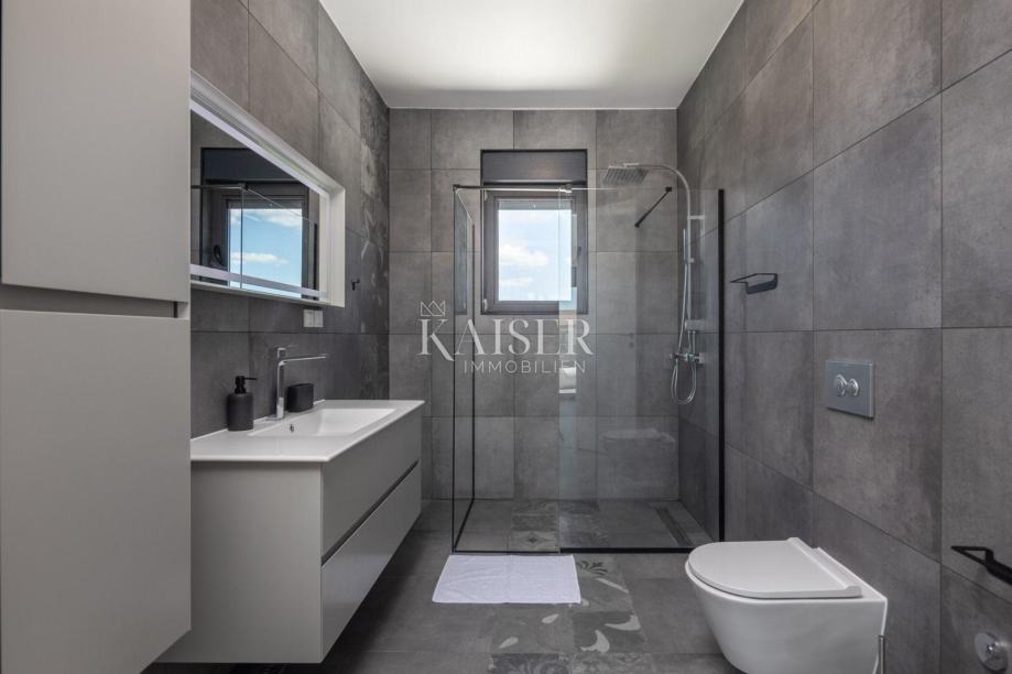 Svetvinčenat se nahaja v osrčju južne Istre, očarljive občine z bogato zgodovino, kulturno dediščino in pristno istrsko arhitekturo. Svetvinčenat, znan po renesančnem gradu Morosini-Grimani, srednjeveških prireditvah in vrhunski ponudbi hrane in vina, ponuja popolno mešanico tradicije in sodobnega življenja. Obdan z neokrnjeno naravo, oljčnimi nasadi in vinogradi. Kaiser Immobilien s ponosom predstavlja to edinstveno priložnost – razkošno 214 m2 veliko vilo, ki se nahaja v mirnem okolju ekskluzivnega kompleksa s skupno desetimi vilami. Zaprti kompleks zagotavlja zasebnost in varnost, vrhunska arhitektura in skrbno izbrani detajli pa zagotavljajo udobje brez primere. Ob prihodu v vilo vas pričaka pokrit vhod z elegantno 15 m2 veliko teraso. Posebno pozornost si zaslužijo pametna vhodna vrata, ki omogočajo odklepanje s prstnim odtisom, kodo ali aplikacijo, z vgrajeno kamero, ki lastniku omogoča, da vidi in registrira vsakega obiskovalca iz udobja svojega doma. Ob vstopu v vilo pridete na prostoren 7 m2 velik hodnik, ki izžareva prefinjenost. Visoki stropi 3 metre v pritličju še dodatno poudarjajo občutek prostornosti in razkošja. Na levi strani hodnika je moderna kopalnica velikosti 9 m2, opremljena z vrhunsko sanitarno keramiko, tušem, WC-jem in kvalitetnim pralnim strojem. Na desni strani hodnika se nahaja prostorna 25 m2 velika spalnica, ki je v celoti opremljena z vrhunskim ENZA HOME pohištvom, tako kot ostala vila. Ta soba ima lastno kopalnico velikosti 8 m2 s prho, straniščem in okni, ki omogočajo neposreden dostop navzven, kar je idealno po uživanju v bazenu. Osrednji del pritličja predstavlja razkošna odprta dnevna soba z jedilnico in kuhinjo, skupne površine 51 m2. Kuhinja priznane italijanske blagovne znamke VENETA CUCINE je opremljena z najsodobnejšo belo tehniko, v dnevni sobi pa najsodobnejši TV sprejemnik diagonale od 50 do 75 inčev. Za dodatno funkcionalnost ima kuhinja prostorno shrambo v izmeri 7,3 m2, v njej pa je še tehnični prostor v izmeri 3,4 m2, kjer se nahajajo grelniki vode, talno ogrevanje itd. Dnevna soba se odpira na čudovito zunanjost vile - 30 m2 pokrite terase z dizajnerskim italijanskim pohištvom, velik bazen 10 x 5 m z avtomatskim sistemom doziranja soli in možnostjo ogrevanja ter skrbno urejen vrt z razsvetljavo in avtomatskim zalivanjem. Notranje stopnice vodijo v prvo nadstropje vile, kjer je prostoren 14 m2 velik hodnik z več možnostmi uporabe prostora. Tu so tri spalnice – dve sobi velikosti 17 m2, vsaka s svojo kopalnico 8 m2 s tušem in WC-jem ter glavna spalnica 16 m2 z garderobo 4 m2 in razkošno kopalnico 8 m2. Dodaten prostor nudi 5 m2 velika shramba, primerna za shranjevanje perila in drugih potrebščin. Posebna prednost tega nadstropja je prostorna 51 m2 velika terasa, s katere se ob jasnih dneh razprostira majhen pogled na Brione in morje. Vila je opremljena z najsodobnejšimi sistemi ogrevanja in hlajenja. V vseh prostorih s keramičnimi talnimi oblogami je vgrajeno talno ogrevanje, sodobni konvektorji pa zagotavljajo optimalno temperaturo skozi vse leto. Kopalnice so dodatno opremljene z grelniki brisač. Vrt se razprostira na parceli velikosti cca 1200 m2, obdani z elegantno ograjo. Nepremičnina vključuje parkirišče za najmanj tri do štiri avtomobile z daljinskim dostopom. Velika prednost te nepremičnine je dejstvo, da se nahaja znotraj ekskluzivnega resorta desetih vil, ki so namenjene turističnemu najemu s pričakovanim letnim prihodkom 50.000€. Celoten kompleks je tlakovan, osvetljen in pod nadzorom ter vključuje hišnika, ki skrbi za vzdrževanje vil in vrtov, ter ekipo za čiščenje in upravljanje najemov vil. Nakup te vile ne zagotavlja le razkošnega doma, ampak tudi odlično naložbeno priložnost, ki lastnikom omogoča, da uživajo v sodobnem, ekskluzivnem življenjskem slogu z varnimi finančnimi donosi. Opomba: Cena ne vključuje 25% DDV, ki je v primeru nakupa nepremičnine preko pravne osebe možno vrniti v celoti v roku 90 dni. Bližina vsebine: Restavracija - 3 km Trgovina, pekarna - 3 km Morje - 13 km Lekarna, bencinska črpalka, bankomat - 6 km Avtobusna postaja - 1,4 km Vodnjan - 6 km Letališče - 15 km Nacionalni park Brioni - 12 km Oddaljenost od večjih mest: Pula- Ljubljana: 200 km Pula- Dunaj: 580 km Pula- Budimpešta: 600 km Pula- Praga: 900 km Pula- München: 600 km Pula- Zagreb: 264 km Agencijska provizija za kupca znaša 3% + DDV in se plača v primeru nakupa nepremičnine, ob sklenitvi prvega pravnega posla. ID-KODA: 127-068 Če si želite nepremičnino ogledati osebno, kontaktirajte: Jennifer Hofmann E-pošta: jennifer@kaiser-immobilien.hr Tel: +385-91-515-0887 http://kaiser-immobilien.hr/