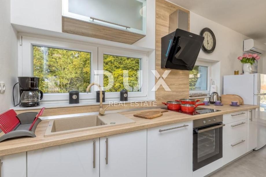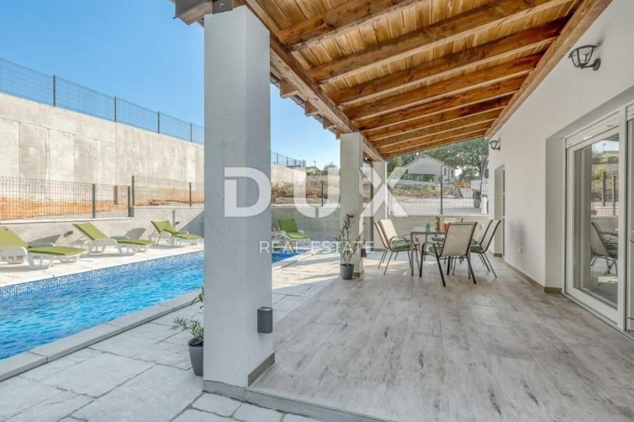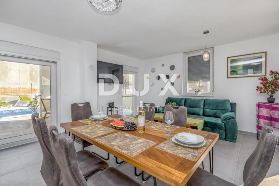 ISTRA, TINJAN - Lepa hiša dvojček, ki se nahaja v mirnem in manjšem naselju nedaleč od mesta Poreč. S ponosom vam predstavljamo to kakovostno hišo dvojček, ki se nahaja le 17 km od znanega in nezgrešljivega mesta Poreč ter njegovih urejenih plaž. Hiša se nahaja v manjšem in mirnem naselju, ki je sestavljeno večinoma iz družinskih hiš in nekaj počitniških hiš. OPIS NEPREMIČNINE; Hiša je sestavljena iz skupno 84m2 bivalne površine, razdeljene na dve etaži, pritličje in prvo nadstropje. Tako se v pritličju hiše, ob samem vhodu, nahaja preddverje, ki nas pripelje do večje odprte površine z udobno dnevno sobo, jedilnico in sodobno opremljeno kuhinjo. Ta prostor krasijo večje drsne steklene stene, skozi katere sega pogled in dostop do vrta hiše in bazena, ter večja pokrita terasa, idealna za sprostitev s prijatelji in družino. V pritličju hiše je dodatno ločena kopalnica za goste in shramba. Notranje stopnišče vodi v prvo nadstropje hiše, kjer sta dve spalnici, skupna kopalnica in pralnica. Ena od spalnic ima tudi dostop do zasebne terase s pogledom na ostalo vas in zelenje. Dvorišče hiše udobnih 353 m2, v celoti ograjeno in urejeno tako, da je vzdrževanje kar se da enostavno. Osrednji del dvorišča zavzema bazen s prostorom za sončenje, na vrtu pa je dovolj prostora za sprostitev in zabavo. Na vrtu sta tudi dve parkirni mesti za vaše pločevinaste ljubljenčke. DODATNE INFORMACIJE; * Hiša se prodaja opremljena, kot je razvidno iz slik. * Ogrevanje in hlajenje je zagotovljeno s klimatsko napravo. * Hiša ima vgrajen dimnik na katerega lahko bodoči lastniki po želji priklopijo peč na pelete ali drva. * Lastništvo je urejeno, 1/1, brez bremen. OPIS LOKACIJE: Nepremičnina se nahaja na mirni lokaciji v majhnem in mirnem družinskem naselju, le 17 km od centra Poreča in znanih plaž. Glede na to, da je lokacija hiše mirna, brez veliko hrupa, prometa in gneče, lahko ta nepremičnina predstavlja idealno priložnost za vse tiste, ki iščejo investicijsko priložnost za turistične namene ali za vse tiste, ki iščejo priložnost za družinsko hišo. Vsi potrebni objekti za vsakdanje življenje so od 2 km do 5 km oddaljeni od hiše, kjer se nahajajo večje in manjše trgovine, tržnice, tržnice, zdravniki, lekarne ter številne znane restavracije in gostilne. Prometna povezanost kraja je idealna, le 7 km od hiše je povezava na istrski ipsilon, ki vas prometno poveže s celotnim istrskim polotokom, hitrejša državna cesta pa vas vodi do Poreča in drugih večjih in manjših naselij. v bližini hiše. Za vsa dodatna vprašanja, potrebne informacije ali željo po organizaciji termina za ogled nepremičnine nas kontaktirajte! Cenjene stranke, agencijska provizija se obračunava v skladu s Splošnimi pogoji poslovanja. https://www.dux-nekretnine.hr/opci-uvjeti-poslovanja