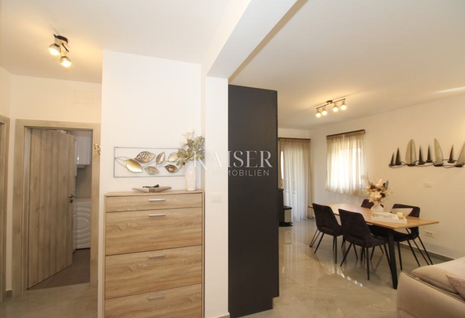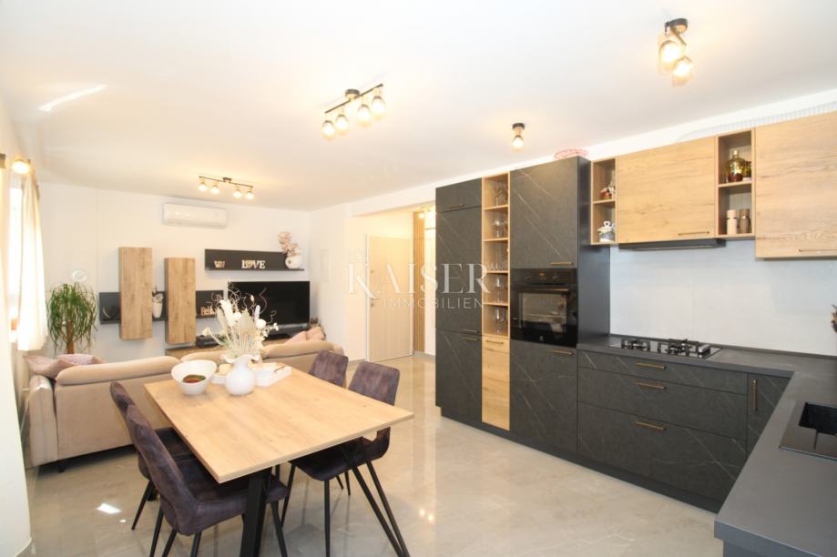 Žminj je očarljivo istrsko mestece, ki se nahaja v samem srcu polotoka, znano po bogati zgodovini, tradicionalni arhitekturi in mirnem načinu življenja. Zahvaljujoč odličnim prometnim povezavam je Žminj oddaljen le 20 minut vožnje od obale in večjih mest, kot so Rovinj, Pulj in Pazin, zaradi česar je idealen kraj za življenje ali počitnice. Občina Žminj ponuja vse, kar potrebujete za prijeten vsakdan - vrtec, šolo, ambulanto, pošto, trgovine, banke in gostinske objekte, vse obdano z naravo in mirom. Posebej velja omeniti močan občutek skupnosti, varnosti in visok življenjski standard v primerjavi z urbanimi območji. Življenje v Žminju ponuja mešanico tradicije in modernosti, idealno za družine, pare in vse tiste, ki iščejo boljši, mirnejši način življenja v srcu Istre. Kaiser Immobilien vam predstavlja moderno in popolnoma opremljeno stanovanje, ki se nahaja v pritličju novogradnje, s skupno površino 60,50 m². Ta nepremičnina se nahaja na izjemno mirni lokaciji, obdani z družinskimi hišami in zelenjem, kar zagotavlja popolno zasebnost in mir. Zaradi idealne orientacije je stanovanje čez dan obsijano z naravno svetlobo, dodatno zasebnost pa zagotavlja dejstvo, da ni neposrednega prehoda sosedov pred stanovanjem. Stanovanje sestavlja funkcionalna predsoba velikosti 5,80 m², ki vodi v prostorno dnevno sobo velikosti 14,35 m², kjer je predviden tudi dimnik za kamin. Zaradi odlične izolacije in orientacije vzhod-jug pa dodatno ogrevanje ni potrebno. Kuhinja z jedilnico odprtega tipa meri 11,50 m² in je bila izdelana po meri, po edinstvenem načrtu lastnika. Popolnoma je opremljena s pomivalnim strojem, velikim hladilnikom z zamrzovalnikom, štedilnikom s tremi plinskimi in enim električnim gorilnikom ter pečico Electrolux. Levo od vhoda sta dve spalnici - ena velikosti 10 m² z veliko omaro po meri in manjša soba velikosti 8,05 m². Kopalnica velikosti 5,15 m² je opremljena s tuš kabino, straniščem, 80-litrskim bojlerjem in oknom, ki omogoča naravno prezračevanje in osvetlitev. Dodaten prostor za shranjevanje zagotavlja shramba velikosti 1,40 m². Iz kuhinje se pride na 5,66 m² veliko ložo z veliko tendo za zaščito pred soncem in kotno sedežno garnituro, ki je idealna za uživanje v toplejših mesecih. Stanovanju pripadata tudi dve parkirni mesti pred stavbo, pa tudi dostop do skupne shrambe velikosti 13 m² v pritličju, primerne za kolesa, orodje ali sezonske predmete. Stanovanje je opremljeno s PVC stavbnim pohištvom z dvojno zasteklitvijo, komarniki in roletami na vseh oknih. Fasada je izolirana s 15 cm polistirena, kar zagotavlja odlično energetsko učinkovitost. Vsaka soba ima klimatsko napravo Hyundai, ki jo je mogoče upravljati tudi prek mobilne aplikacije. Zaradi kakovostne izolacije pa se klimatske naprave redko uporabljajo, saj stanovanje poleti ohranja udobno temperaturo, pozimi pa sončna toplota dovolj ogreje prostor. Nepremičnina se prodaja popolnoma opremljena, razen osebnih stvari, in je idealna za družino, par ali kot naložba. Nahaja se na odlični lokaciji, v bližini vrtcev, šol, trgovin, kavarn, restavracij in razvijajoče se industrijske cone, ki ponuja številne poslovne priložnosti. Gre za izjemno lepo, moderno opremljeno stanovanje z domačim vzdušjem - takoj vseljivo brez dodatnih naložb. Bližina ustreznih storitev: Restavracija - 400 m Kavarna - 350 m Trgovina - 500 m Kmetija - 700 m Avtobusna postaja - 300 m Lekarna - 450 m Bolnišnica - 7 km Frizerski salon - 650 m Vrtec - 300 m Osnovna šola - 500 m Industrijska cona - 1 km Pazin - 13 km Pulj - 43 km Reka - 70 km Oddaljenost do večjih mest: Žminj - Ljubljana: 180 km Žminj - Dunaj: 558 km Žminj - Budimpešta: 573 km Žminj - Praga: 829 km Žminj - München: 520 km Žminj - Zagreb: 231 km Provizija agencije za kupca znaša 3% + DDV in se plača v primeru nakupa nepremičnine, ob sklenitvi prvega pravnega dejanja. Zainteresirani kupci si lahko ogledajo nepremičnino le ob predhodnem podpisu pogodbe o posredovanju v prometu z nepremičninami. ID-KODA: 127-138 Če si želite nepremičnino ogledati osebno, se obrnite na: Jennifer Hofmann E-pošta: jennifer@kaiser-immobilien.hr Tel.: +385-91-515-0887 http://kaiser-immobilien.hr/