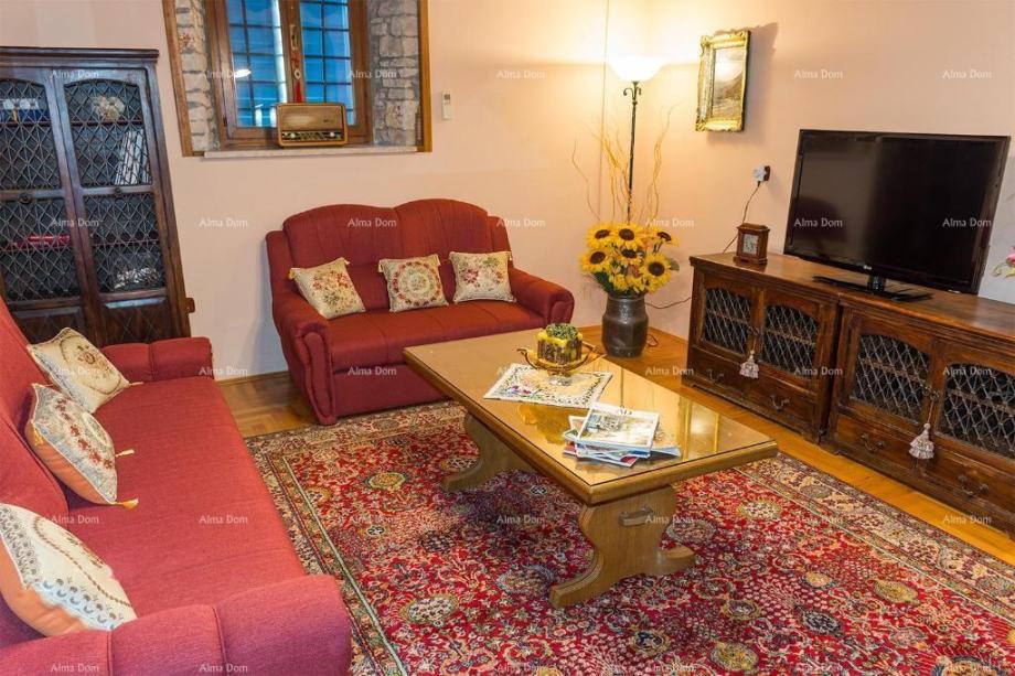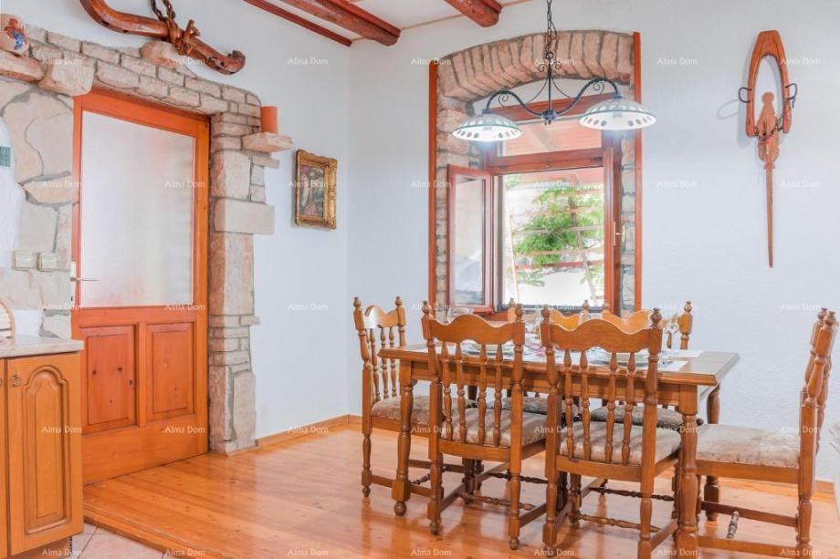 Prodamo 100 let staro kamnito hišo v nizu, ki je bila popolnoma prenovljena v stilu starih istrskih hiš z odprtimi kamnitimi zidovi, lesenimi tramovi in opremljena z unikatnimi kosi pohištva v starinskem duhu.