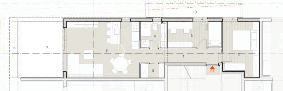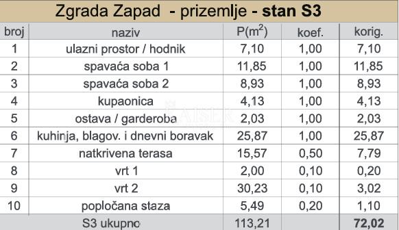 Kaiser Immobilien predstavlja: Udobno dvosobno stanovanje (S3) v pritličju z zasebnim vrtom, PRVA VRSTA DO MORJA, Kaštel Sućurac Na izjemni lokaciji, v prvi vrsti do morja, se nahaja to čudovito, novo in moderno dvosobno stanovanje. Kot del ekskluzivnega stanovanjskega kompleksa to stanovanje v pritličju ponuja edinstveno mešanico razkošja, udobja in neposredne povezave z naravo, s čudovitim pogledom na morje. O PROJEKTU: To stanovanje je bilo skrbno zasnovano tako, da poudarja odprte, svetle prostore in brezhibno povezavo z naravnim okoljem. Velike terase in zasebni vrtovi ponujajo čudovit razgled na morje, visokokakovostni materiali in prefinjena arhitekturna zasnova pa zagotavljajo trajno vrednost. Kompleks je sestavljen iz manjših stavb s samo 8 stanovanji, kar zagotavlja zasebnost in ekskluzivnost. O STANOVANJU: Oznaka: Stavba Istok - Pritličje - Stanovanje S3 Skupna popravljena površina: 72,04 m² RAZPOREDITEV STANOVANJA: Vhodni prostor / hodnik: 7,10 m² Spalnica 1: 11,85 m² Spalnica 2: 8,93 m² Kopalnica: 4,13 m² Shramba / garderobna omara: 2,03 m² Kuhinja, jedilnica in dnevna soba: 25,87 m² Pokrita terasa: 15,57 m² (izračunano 7,79 m²) Vrt 1: 2,00 m² (izračunano 0,20 m²) Vrt 2: 28,36 m² (izračunano 2,84 m²) Asfaltirana pot: 6,52 m² (izračunano 1,30 m²) VRHUNSKA OPREMA IN UGODNOSTI: Lega prva vrsta ob morju: Neoviran pogled na morje in neposreden dostop do obale. Zasebni vrt in velika pokrita terasa: Prostoren zunanji prostor z urejenim vrtom in veliko teraso, idealen za sprostitev in uživanje v mediteranskem vzdušju. Podzemna garaža: Garaža je z dvigalom povezana z vsemi nadstropji za maksimalno udobje. Visokokakovostni materiali: Vrhunski parket in keramika. Klimatska naprava: Večconska klimatska naprava. Aluminijasta drsna polkna: Za zaščito pred soncem in dodatno zasebnost. Talno ogrevanje: V kopalnici za dodatno udobje. Prilagodljivost: Možnost izbire zaključnih materialov med gradnjo. Koncept "na ključ": Stanovanje se prodaja popolnoma dokončano (brez pohištva). CENOVNE IN DAVČNE UGODNOSTI: DDV vključen v ceno: Brez dodatnih skritih stroškov. Brez davka na promet nepremičnin: Kupec je oproščen plačila davka na promet nepremičnin (3 %). Parkiranje: Možnost nakupa parkirnega mesta v garaži po ceni 20.000 € ali zunanjega parkirnega mesta po ceni 10.000 €. LOKACIJA: Kaštel Sućurac, ki se nahaja med Splitom in Trogirjem, ponuja popolno kombinacijo mirnega življenja ob morju in bližine vseh mestnih ugodnosti. Ta lokacija omogoča hiter dostop do letališča, avtoceste in vseh kulturnih in zgodovinskih znamenitosti regije. Ne zamudite priložnosti, da postanete lastnik te edinstvene nepremičnine na eni najbolj privlačnih lokacij na Jadranu! Provizija agencije za kupca znaša 3 % + DDV in se plača v primeru nakupa nepremičnine, ob sklenitvi prvega pravnega dejanja. Ogled nepremičnine je možen le ob predhodnem podpisu pogodbe o posredovanju v prometu z nepremičninami. Če si želite nepremičnino ogledati osebno, se obrnite na: Joška Bašića E-pošta: josko@kaiser-immobilien.hr Tel: +385-91-511-2993 http://kaiser-immobilien.hr/