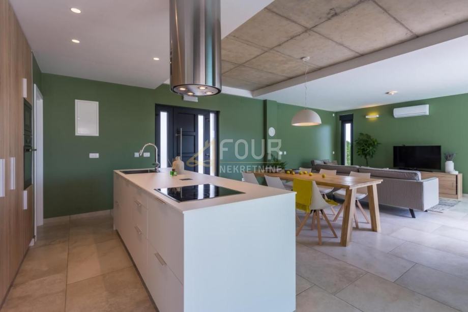 Vila na 200 kvadratnih metrih se razprostira v treh etažah in je vrhunsko opremljena ter opremljena.
