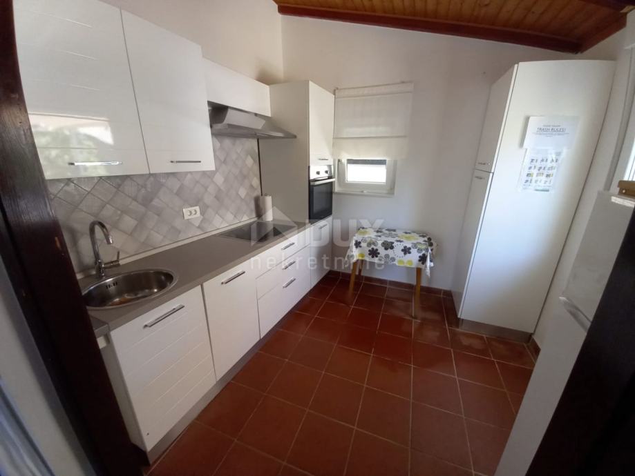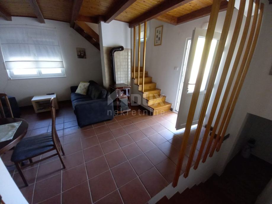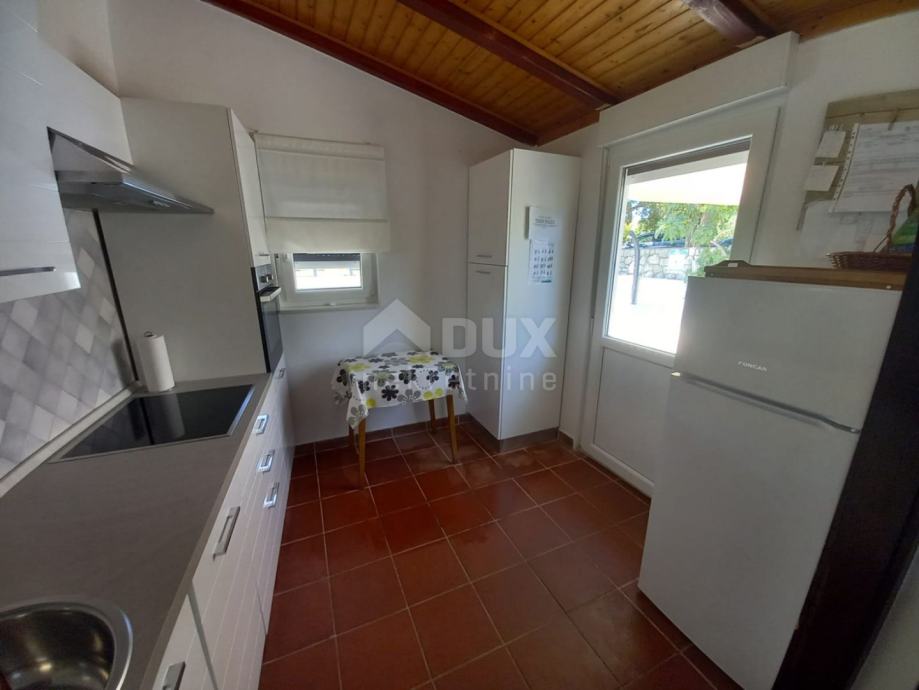 Nepremičnina, ki je idealna kot počitniška hiša, se nahaja v majhnem in mirnem kraju blizu mesta Krk, cca 5 km od morja. Starina je družinska dediščina in je bila popolnoma prenovljena z veliko pozornosti do najmanjših podrobnosti. Obnova je bila zaključena leta 2019 in je poleg konstrukcijskega dela hiše zajemala tudi zamenjavo vseh elektro in vodovodnih inštalacij, leta 2018 pa je bila zamenjana streha. Dvorišče z bazenom, vrtno hišo/strojnico za bazen in sončno ploščad je bilo zgrajeno leta 2022 in je urejeno z izjemno kvalitetnimi kamnitimi oblogami. Hiša dvojček s skupno bivalno površino 74 m2 je sestavljena iz kleti, pritličja in visokega podstrešja. Vhod v pritličju odpira pogled na prostoren bivalni del s kuhinjo, jedilnico in dnevno sobo ter shrambo. Notranje stopnice vodijo v klet s hodnikom, eno spalnico, kopalnico in pralnico. Iz pritličja se lahko po notranjih stopnicah povzpnete tudi v visoko mansardo z zelo prostorno spalnico. Hiša je opremljena s PVC pohištvom z žaluzijami in klimo, obstaja pa tudi možnost ogrevanja na popravljeno staro peč. Dvorišče s cca 150 m2 omogoča udobno parkiranje enega avtomobila. Pred vhodom v hišo je paviljon z žarom, okoli bazena pa je prostor za sončenje s kakovostnimi ležalniki. Vrtna hiša se uporablja kot strojnica za bazen in shramba. Nepremičnina je kategorizirana kot počitniška hiša in dosega izjemno rezervacijo zaradi kakovosti opreme, mirne lokacije in zasebnosti, ki jo ponuja. Prodaja se opremljena. Dokumentacija je urejena, nepremičnina čista in bremen prosta.