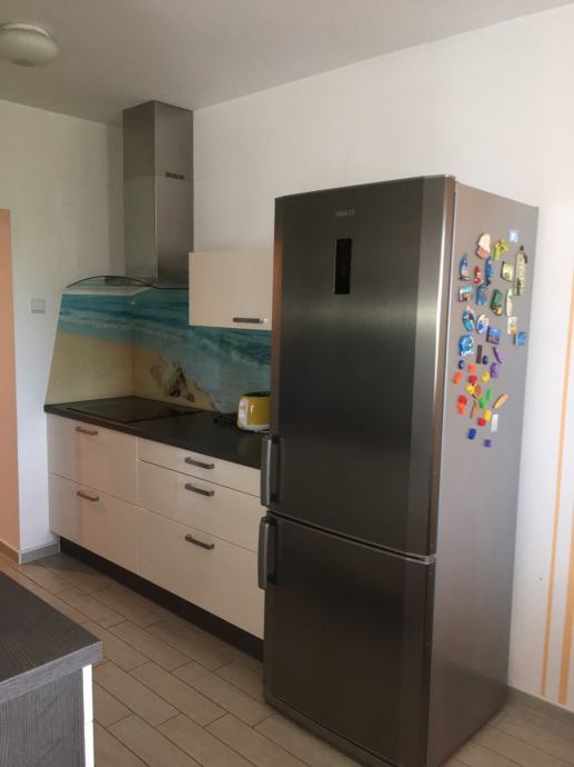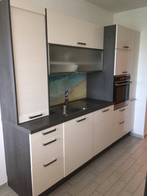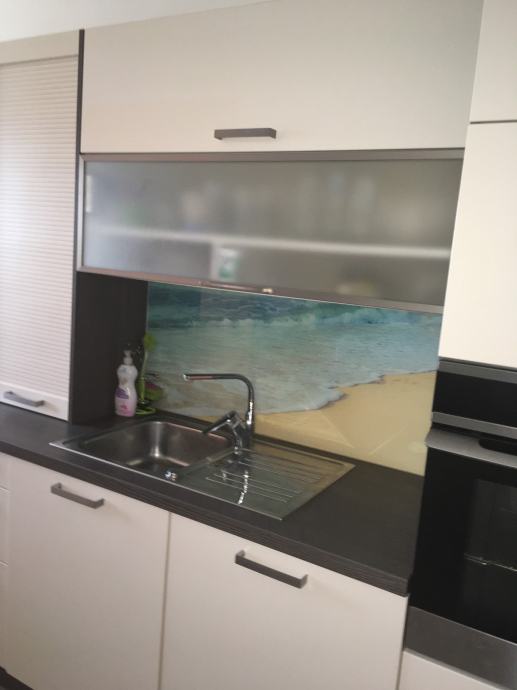 - kuhinja Eve, veliki izvlečni predali na Blum vodilih: indukcijska kuhalna plošča, napa, pomivalni stroj, velik hladilnik, mikrovalovna in klasična pečica.