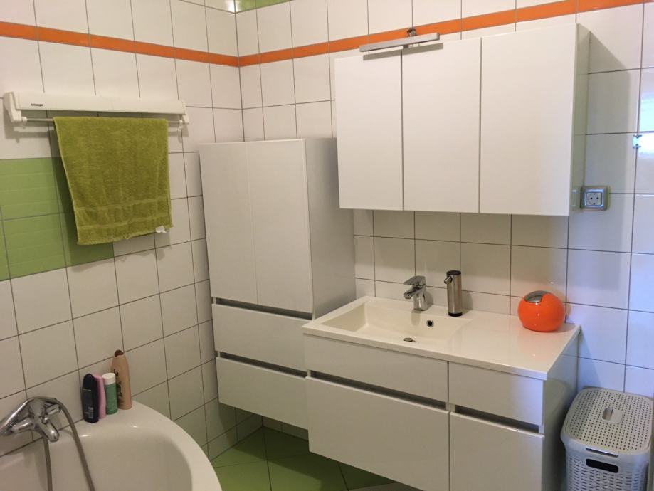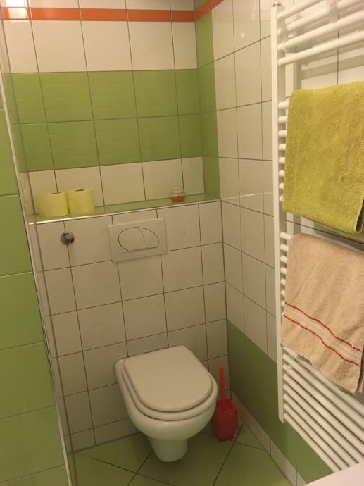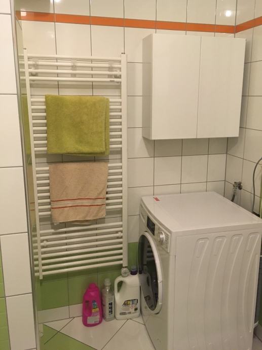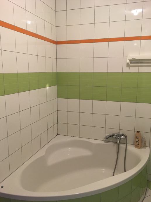 - Kopalnica s kopalno kadjo in WCjem sta združena, s čimer je povečan in optimiziran prostor v sanitarijah, kjer je tudi pralno sušilni stroj.